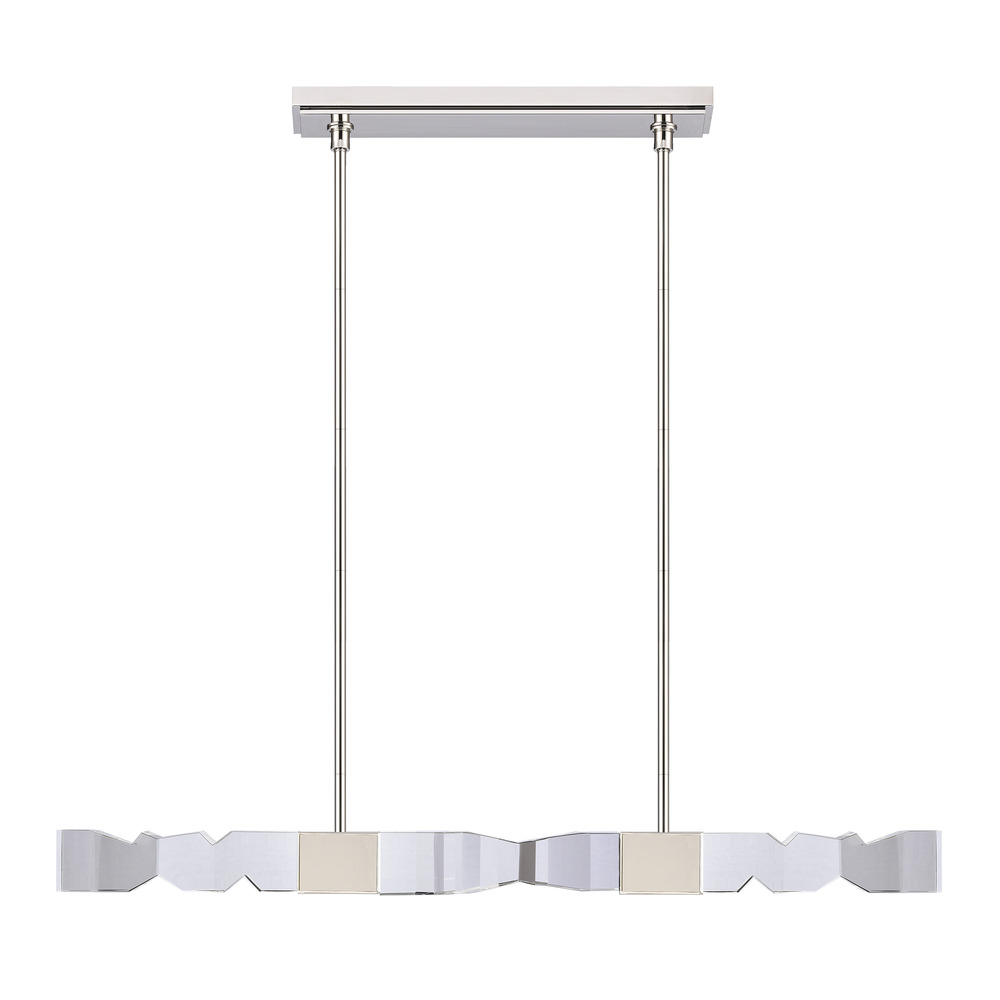 LED 49" 4-light hand formed and polished heavy gauge 3" x 3" linear crystal pendant, with deep edges and slants with each side unique. Refined iron metal details with our luxurious polished nickel finish. Adjustable arms for unique designs and integrated Replaceable LED with 3CCT 3000K, 3500K and 4000K.