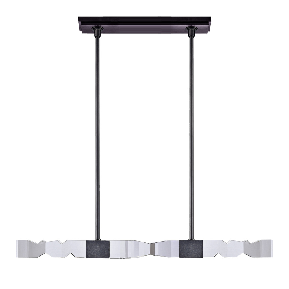 LED 49" 4-light hand formed and polished heavy gauge 3" x 3" linear crystal pendant, with deep edges and slants with each side unique. Refined iron metal details with our sleek satin brushed black finish. Adjustable arms for unique designs and integrated Replaceable LED with 3CCT 3000K, 3500K and 4000K.