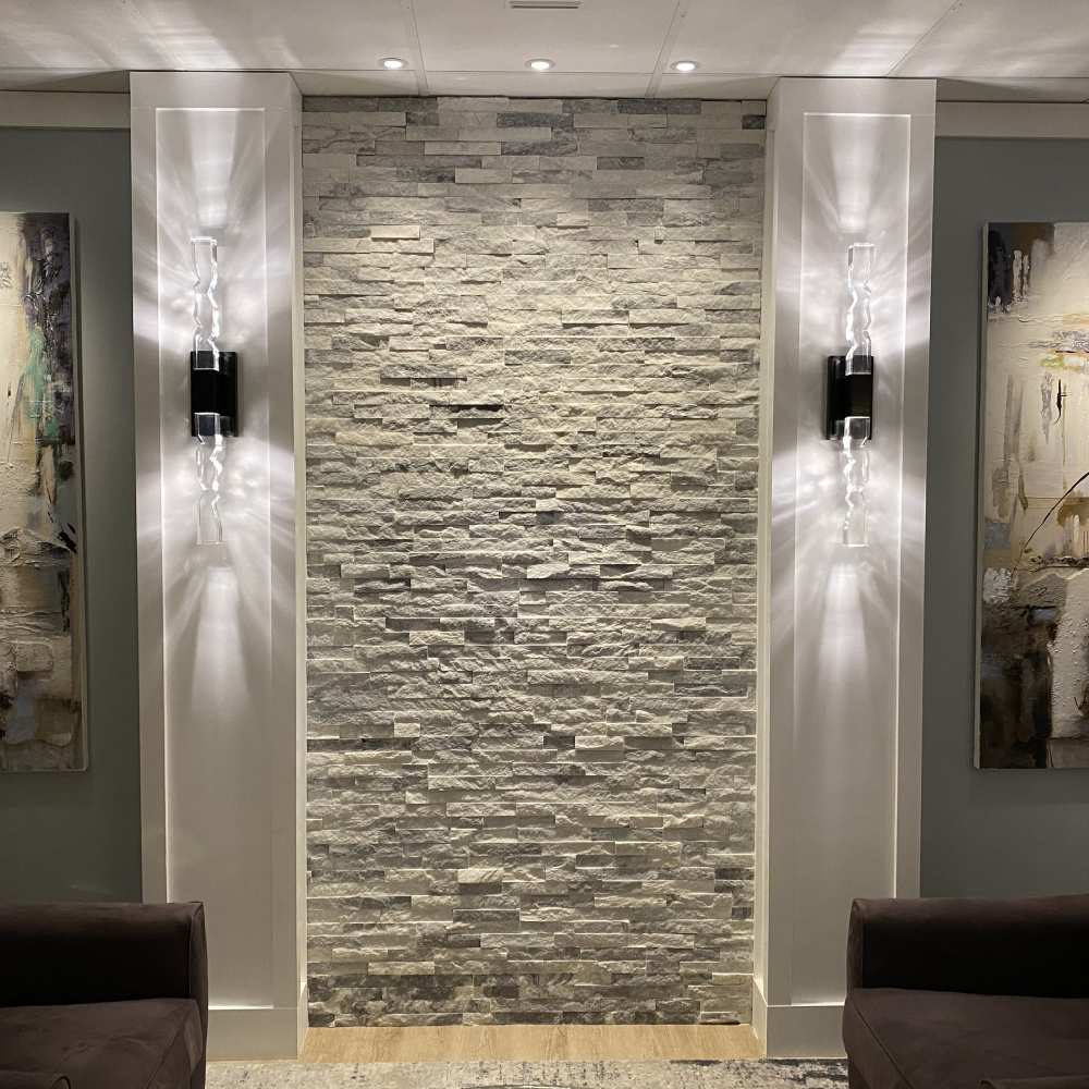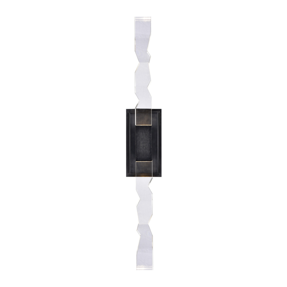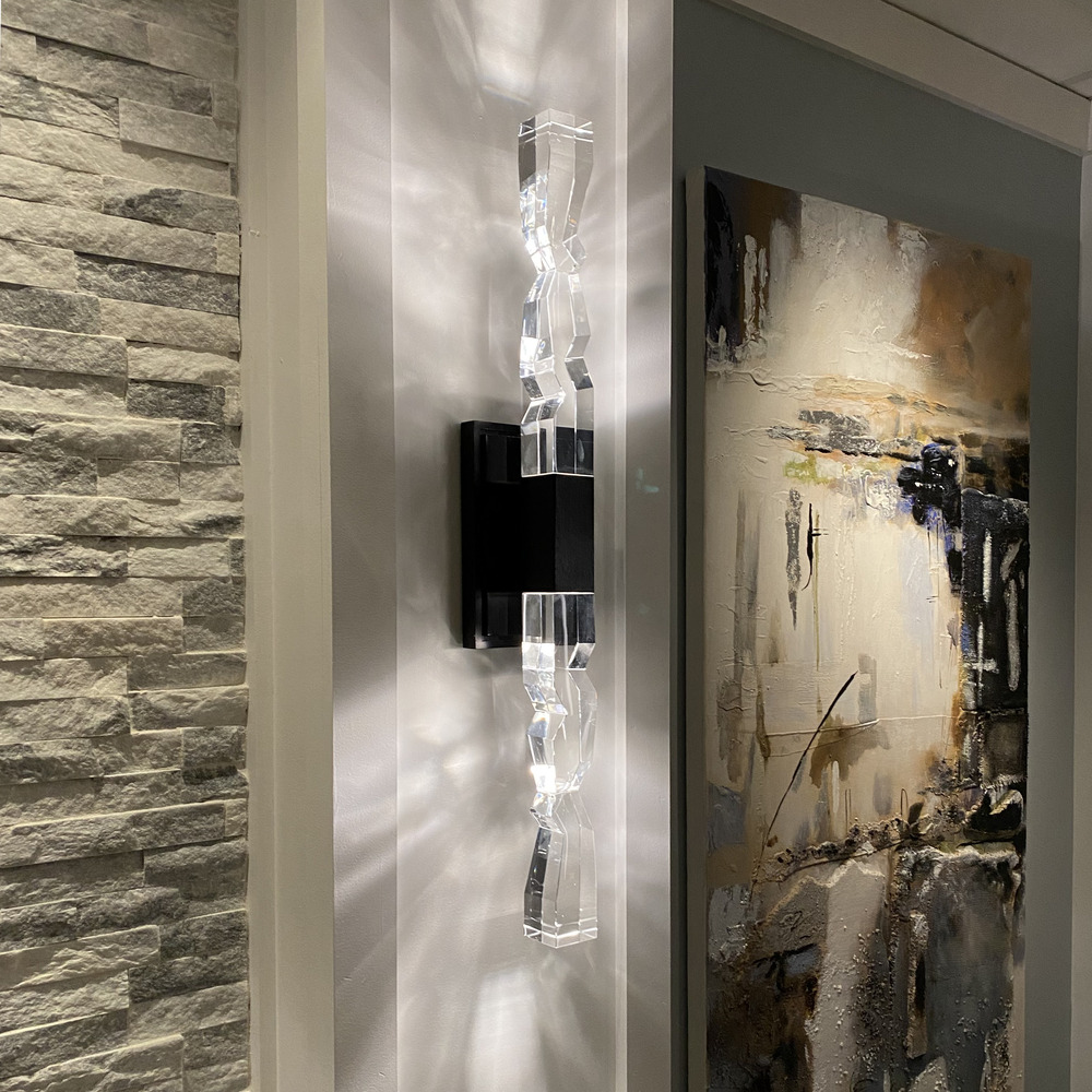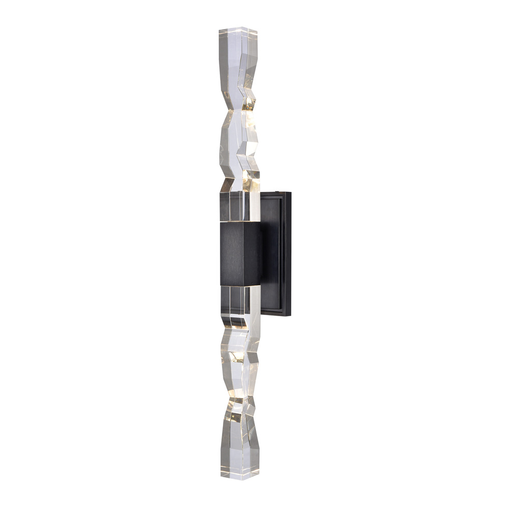 LED 2-Light hand formed and polished heavy gauge 2" x 2" crystal duo wall sconce, with deep edges and slants with each side unique. Refined iron metal details with our sleek satin brushed black finish. Integrated Replaceable LED with 3CCT 3000K, 3500K and 4000K.