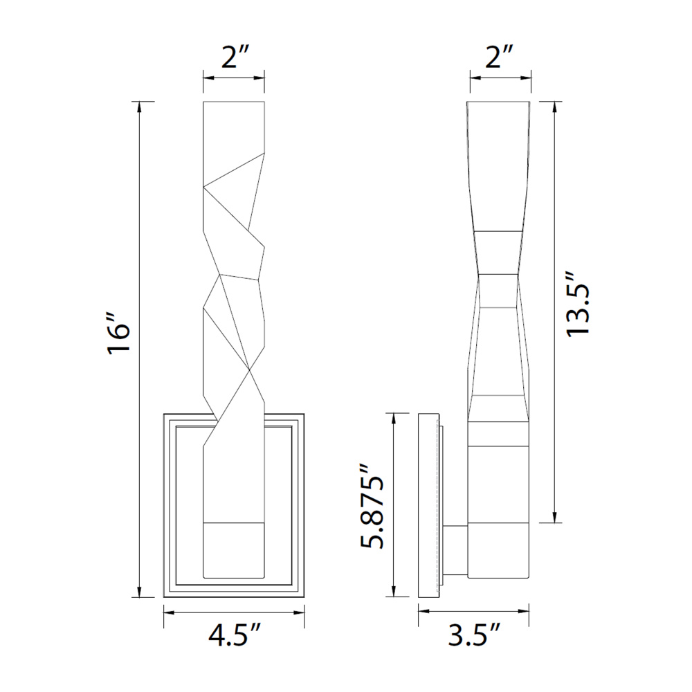 LED hand formed and polished heavy gauge 2" x 2" crystal vertical wall sconce, with deep edges and slants with each side unique. Refined iron metal details with our chic matte white finish. Integrated Replaceable LED with 3CCT 3000K, 3500K and 4000K.