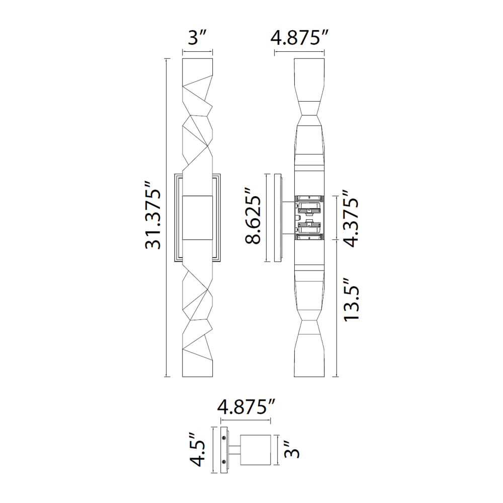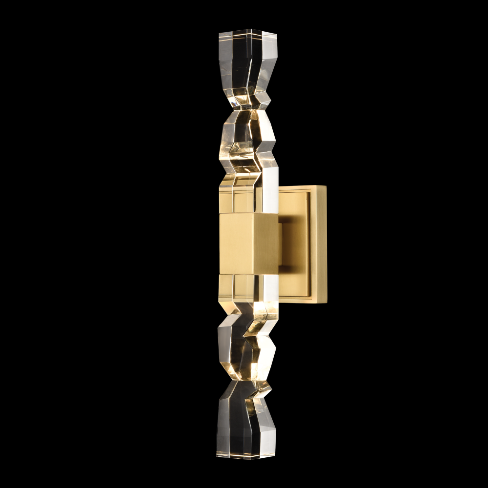LED 2-Light hand formed and polished heavy gauge 3" x 3" crystal duo wall sconce, with deep edges and slants with each side unique. Refined iron metal details with our premium aged brass finish. Integrated Replaceable LED with 3CCT 3000K, 3500K and 4000K.
