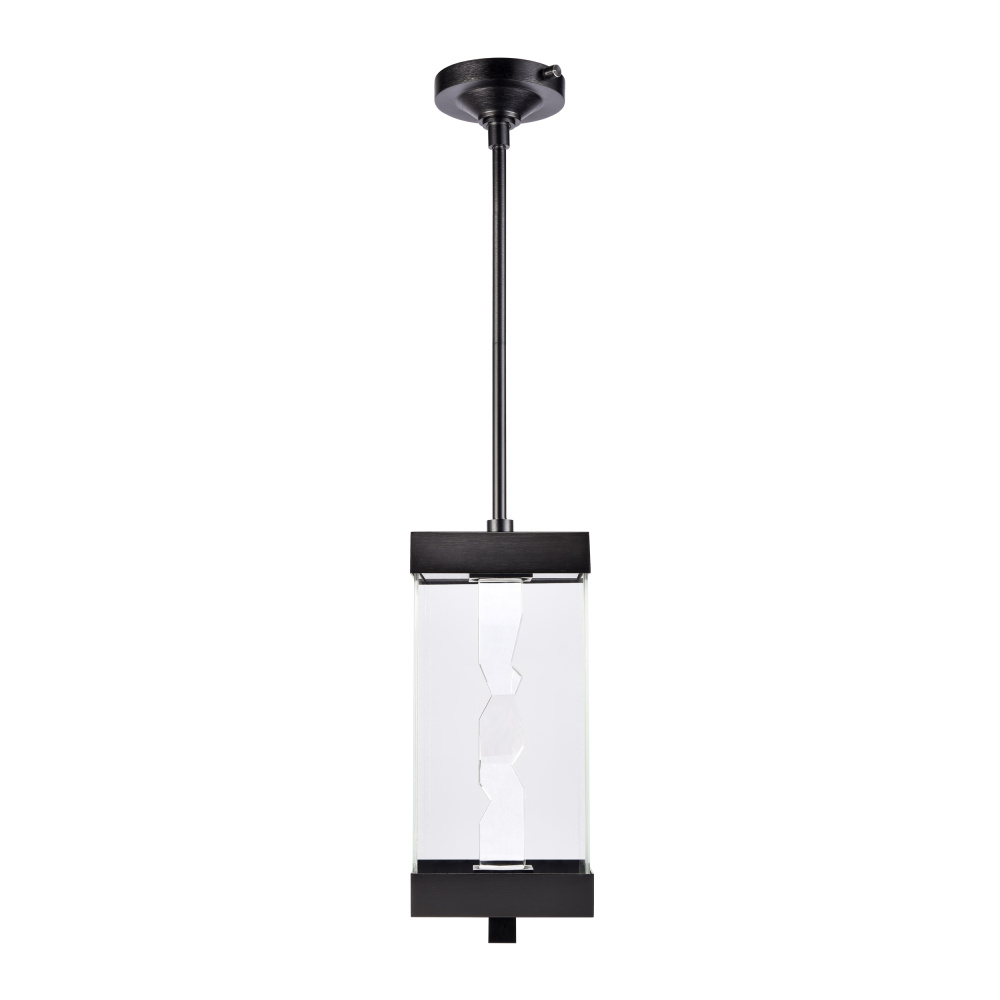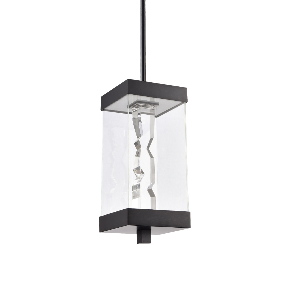 Modern 18" 2-Light Exterior Glass Incased Crystal Pendant Light. Hand formed and polished heavy gauge 2" x 2" crystal with deep edges and slants with each side unique. Refined metal details with our marine grade sleek satin brushed black finish. Equipped with a 3 way switch to showcase the crystal or glass on only or both together, with our powerful LED technology which is easily replaceable and 5CCT 2700K, 3000K, 3500K, 4000K, 5000K.