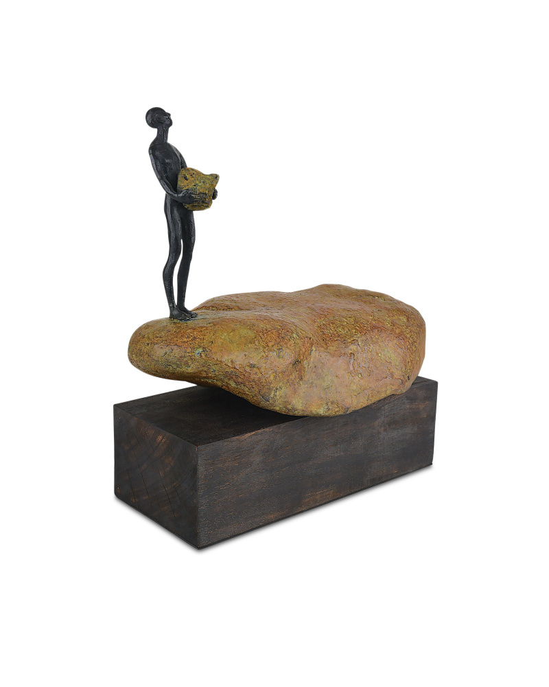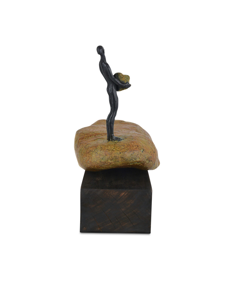 The incredibly artisanal Man on a Rock Small Bronze is a sculpture that celebrates the human psyche, as the artist who created it set out to explore how to represent the feeling of loneliness in a concrete form. The lost-wax process was used to achieve the sculpture, including the pieces of the composition that so convincingly look like stone.