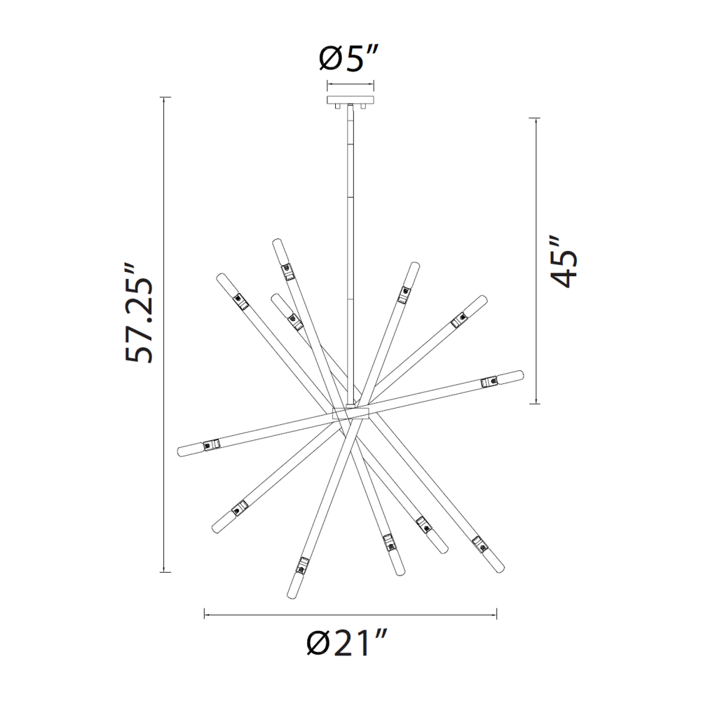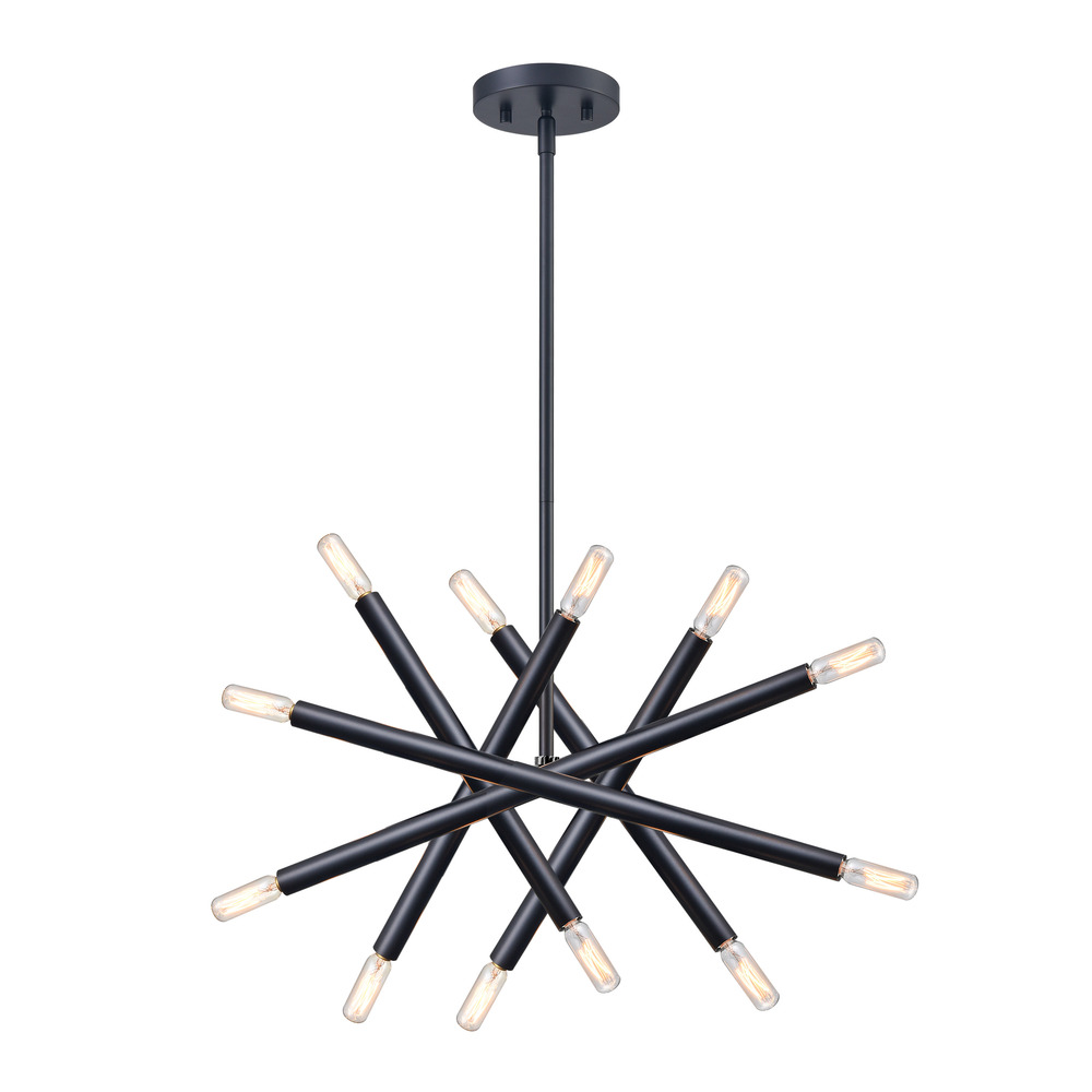 12-Light 21" Modern Sputnik Chandelier with Satin Brushed Black Adjustable Cylinders and Metal Finish.