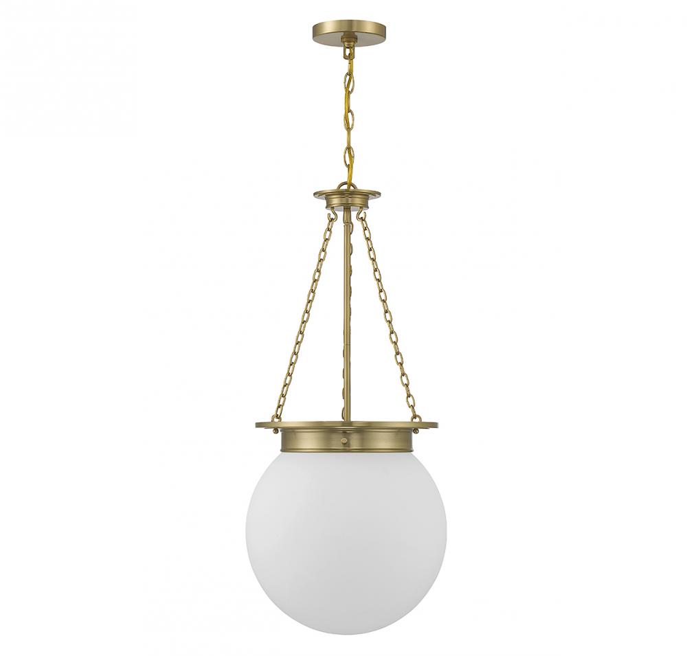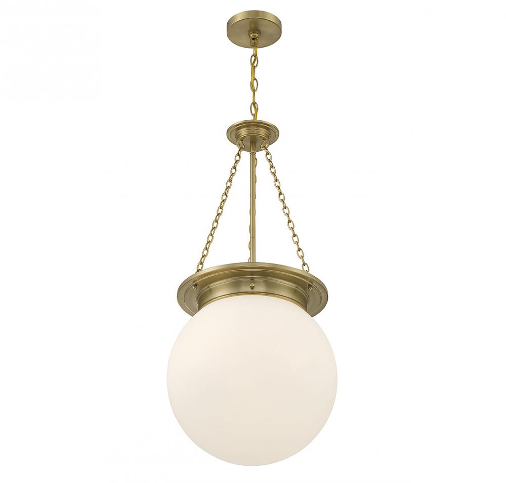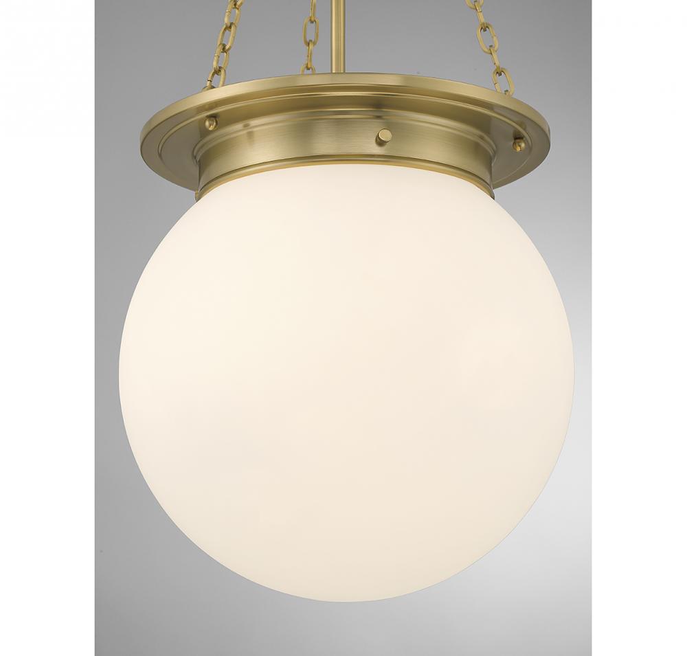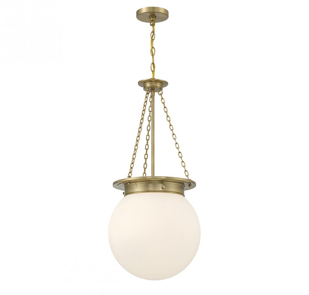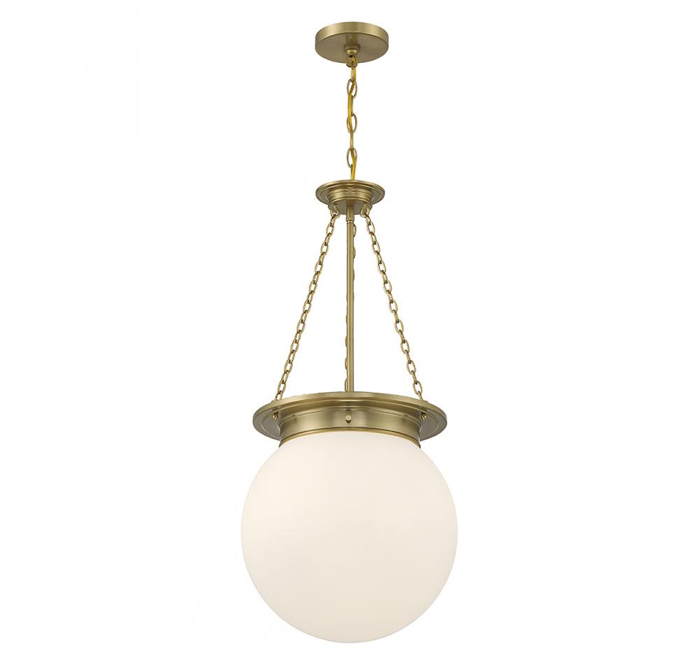 The Savoy House Manor 3-light pendant proves that a classic style can be stunning! An orb-shaped shade of white opal glass hangs down from an understated structure with timeless details. Finished in warm brass. Manor is 31” in height and 13.5” in width. It uses 3 candelabra size bulbs of up to 60 watts per bulb (bulbs not included).