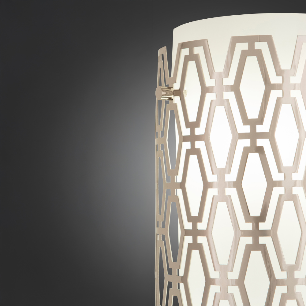The Marcel Half-Round Wall Sconce's elongated frosted-cased white glass shade is framed by a mid-century modern geometric metal frame finished in Polished Nickel. It's the perfect touch of timeless design to bring warm ambient light to any room.