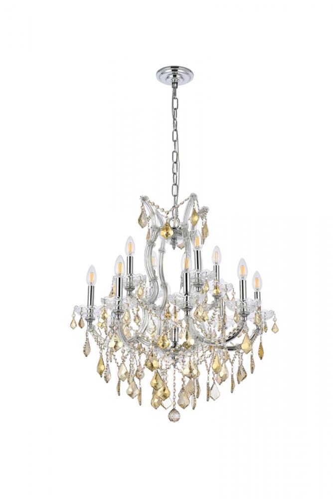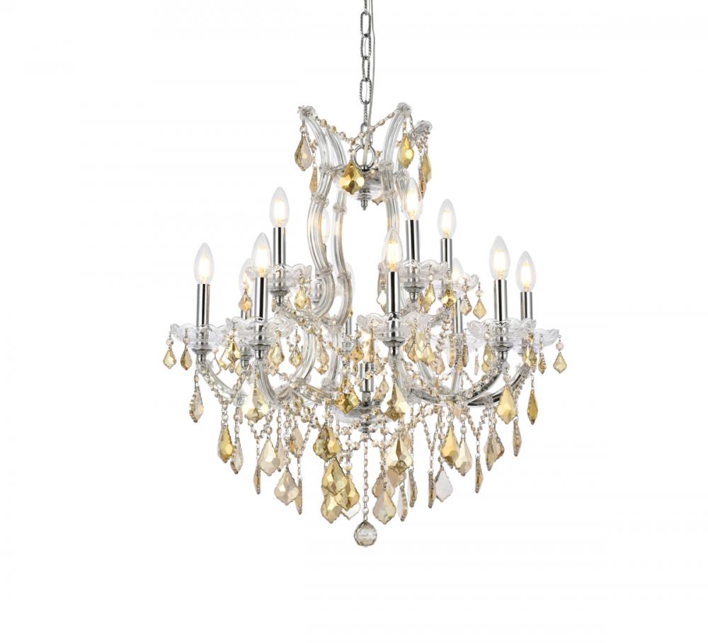 Maria Theresa 13 light Chrome Chandelier Golden Teak (Smoky) Royal Cut Crystal