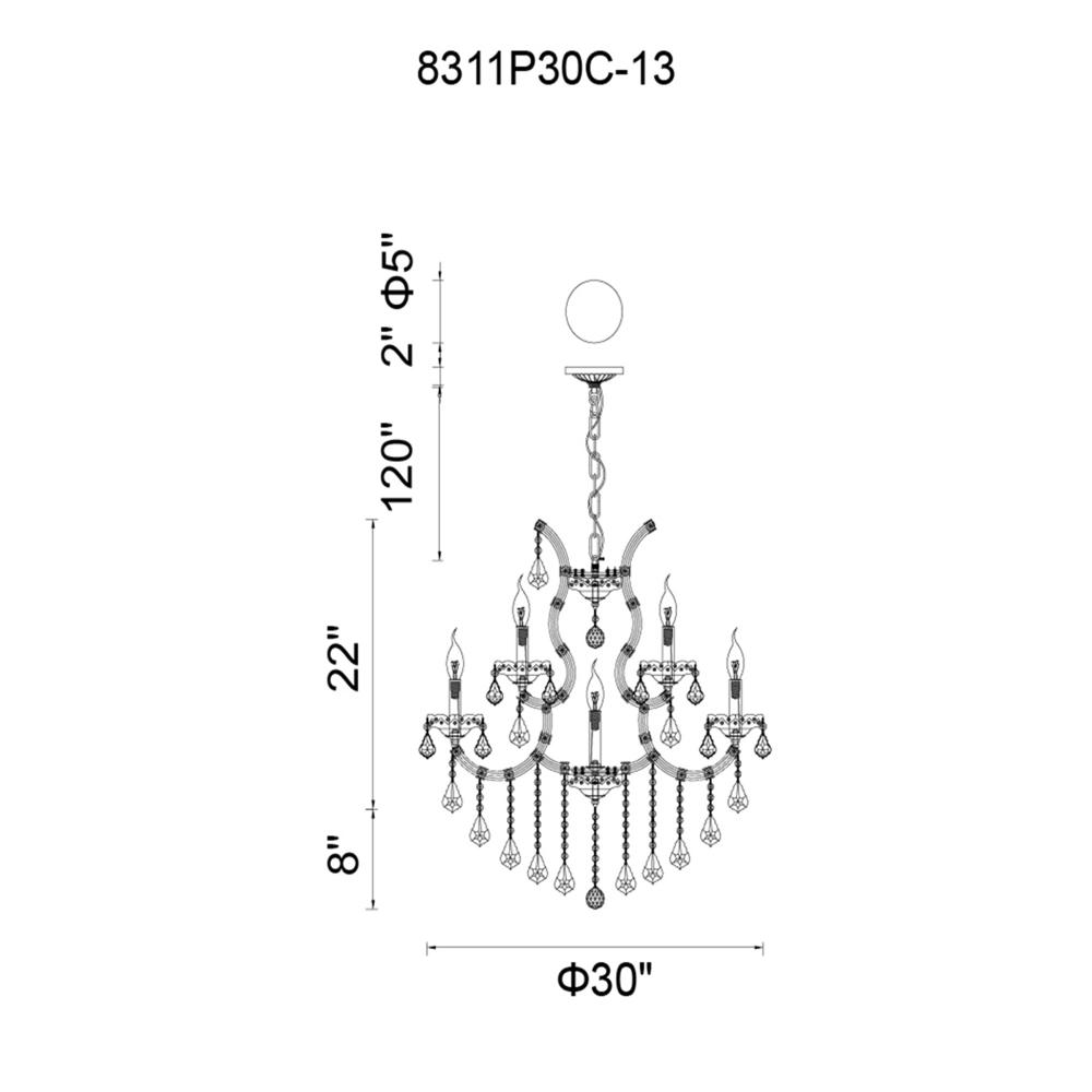A true eye-catcher, the Maria Theresa 13 Light Chandelier has a classic beauty that never goes out of style. Its candelabra silhouette still draws attention even if it has been given a contemporary update. The neat and clean curves and lines are enhanced b