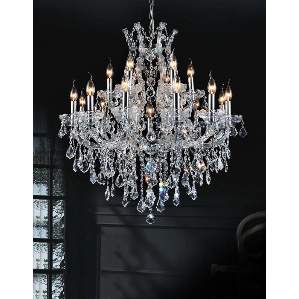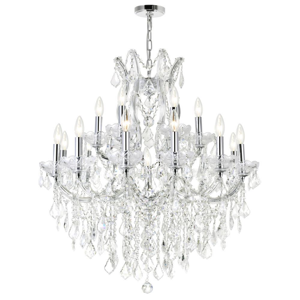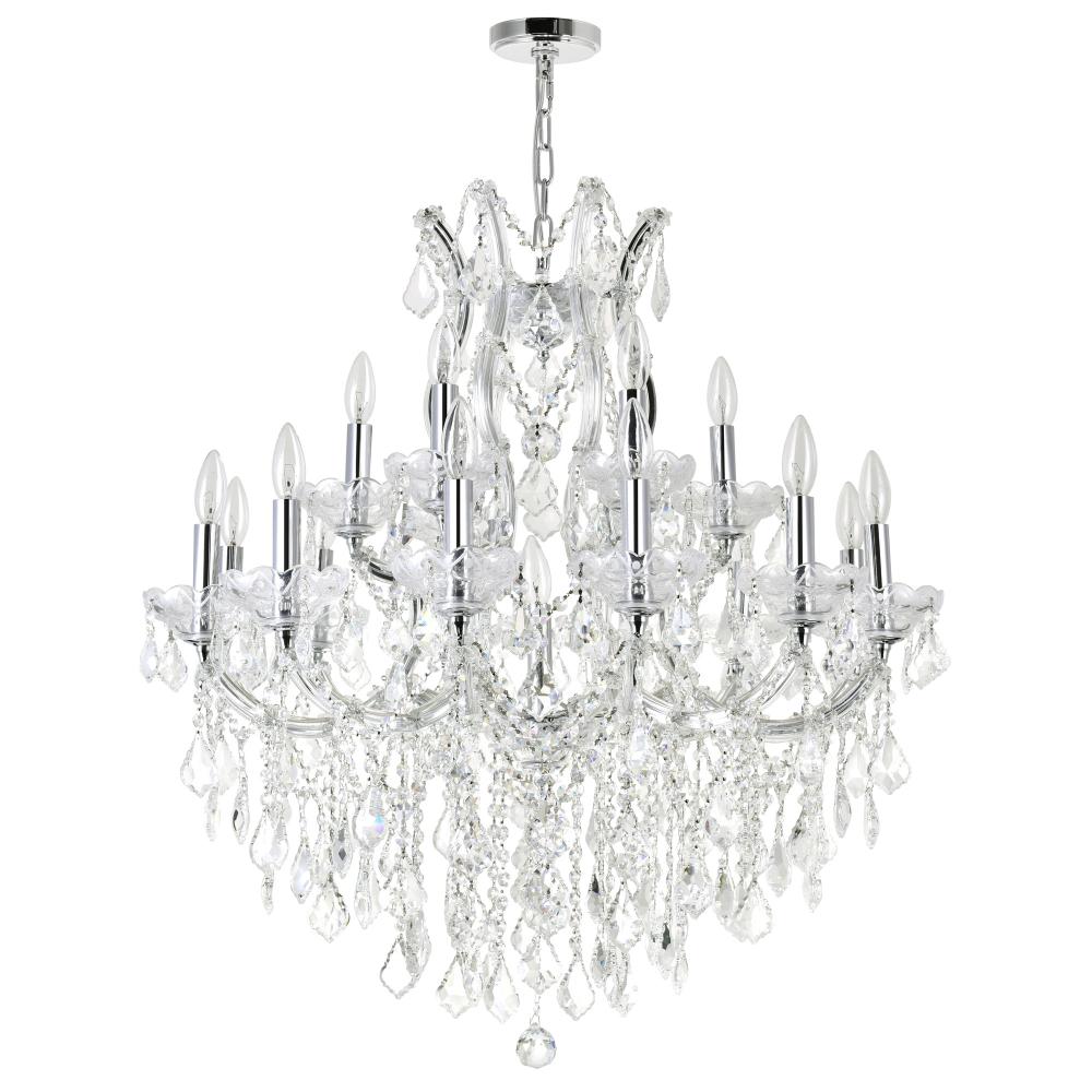 Set up your home's ambiance with help from this impressive Maria Theresa 19 Light Chandelier. This candelabra-style light fixture with chrome hardware and clear crystal embellishment will wash a room with brilliant, luxurious light. It's the perfec