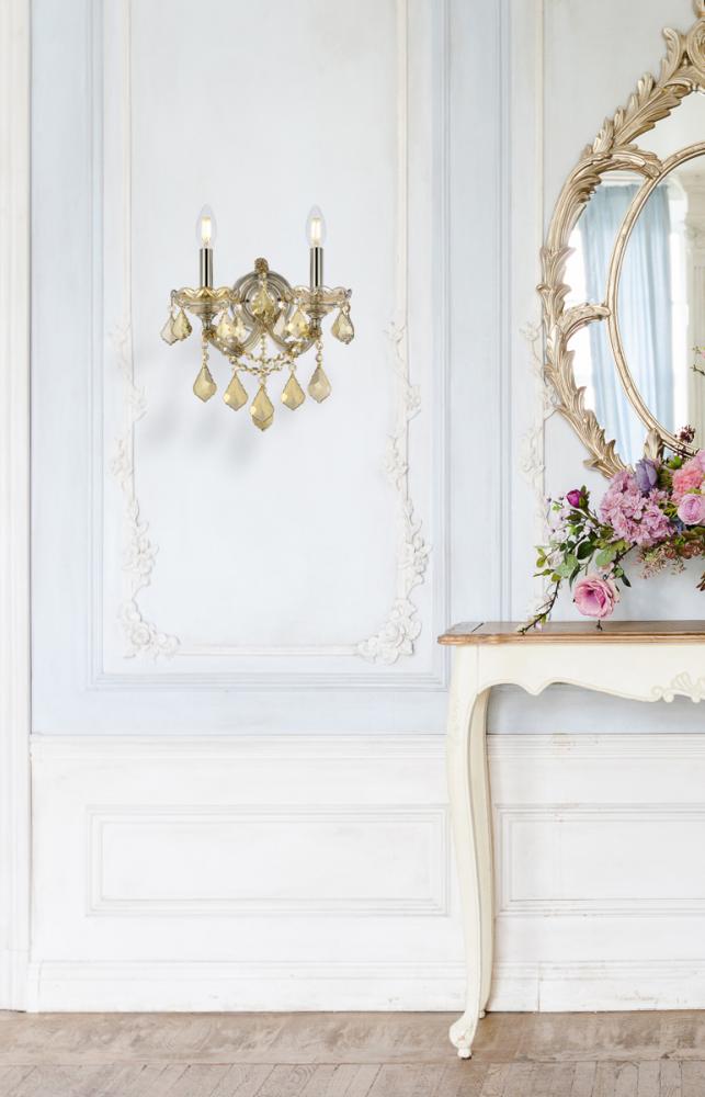 Maria Theresa 2 light Golden Teak Wall Sconce Golden Teak (Smoky) Royal Cut Crystal