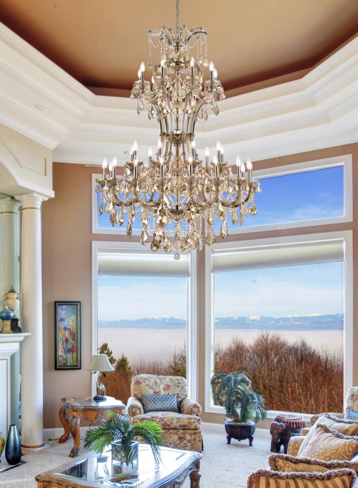 Maria Theresa 36 light Golden Teak Chandelier Golden Teak (Smoky) Royal Cut Crystal