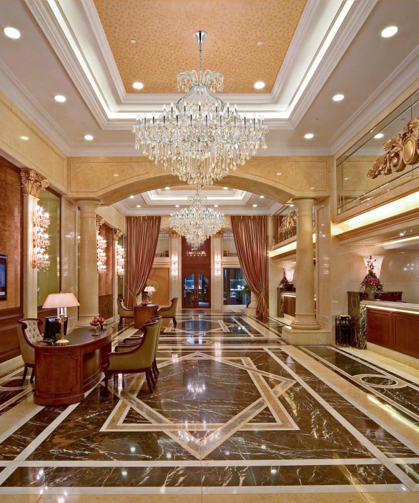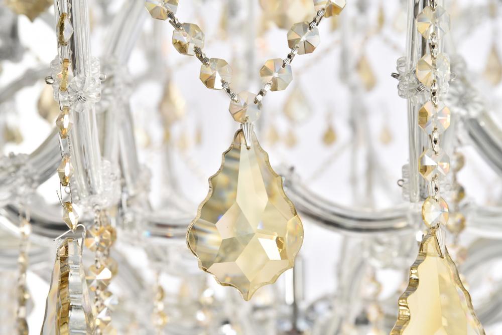 A heavenly high point to your home, Maria Theresa collection pendant lamps are ablaze with hundreds of resplendent crystals. Copious strands of sparkling clear or golden-teak crystals dangle from elaborate tiers of glass-coated steel arms in your choice of a chrome, gold, golden-teak, white, or black finish. An imperial favorite for the stairwell, dining room, or living room.