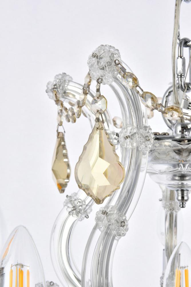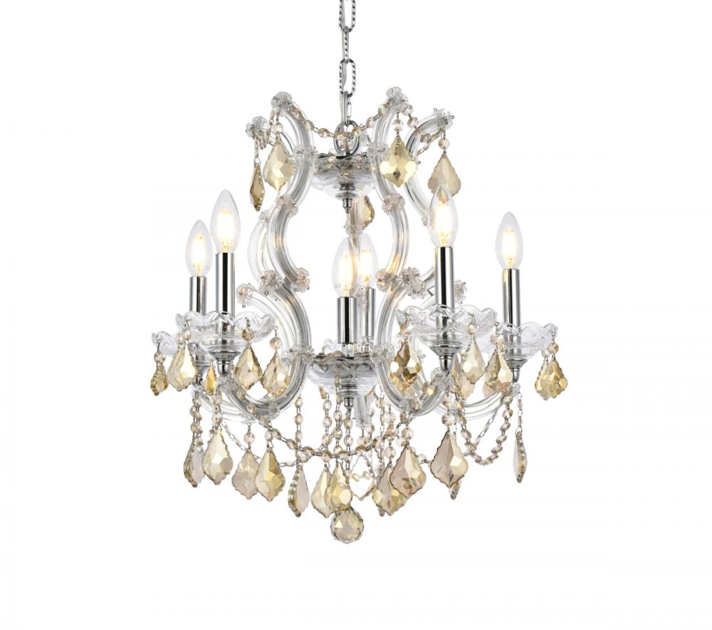 Maria Theresa 6 light Chrome Pendant Golden Teak (Smoky) Royal Cut Crystal