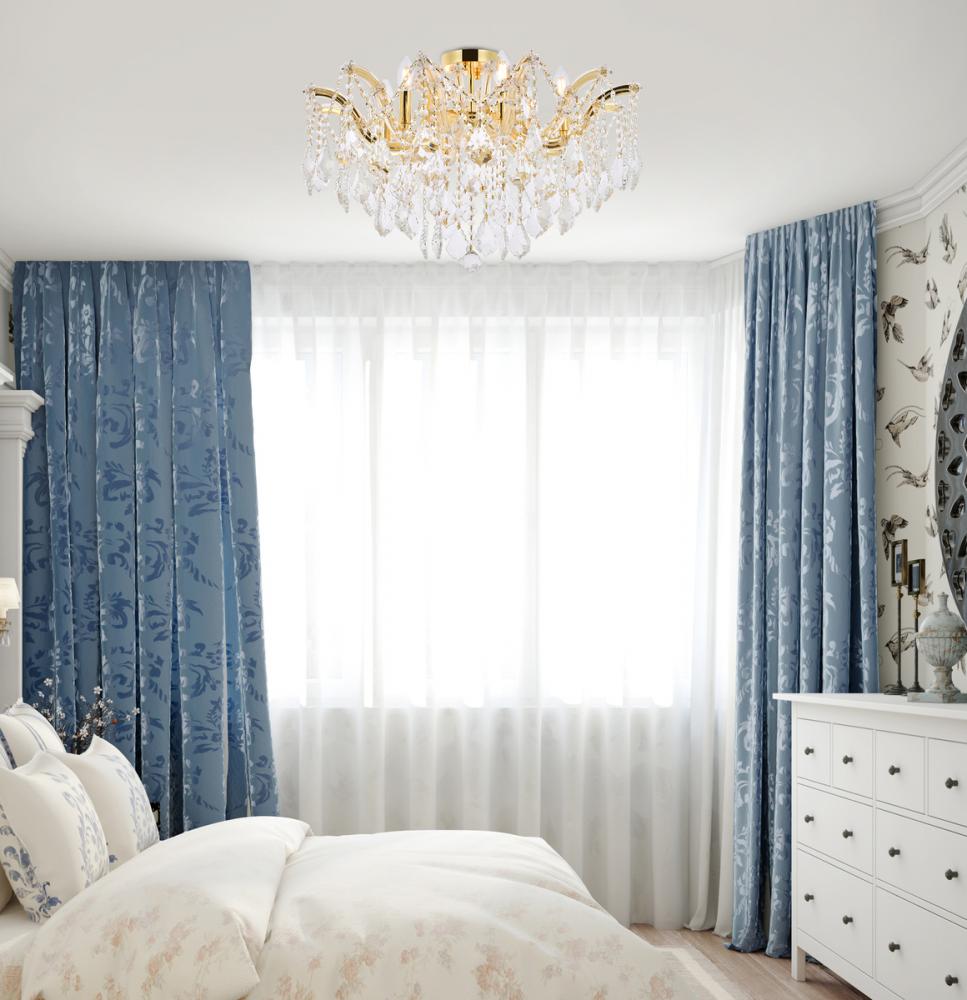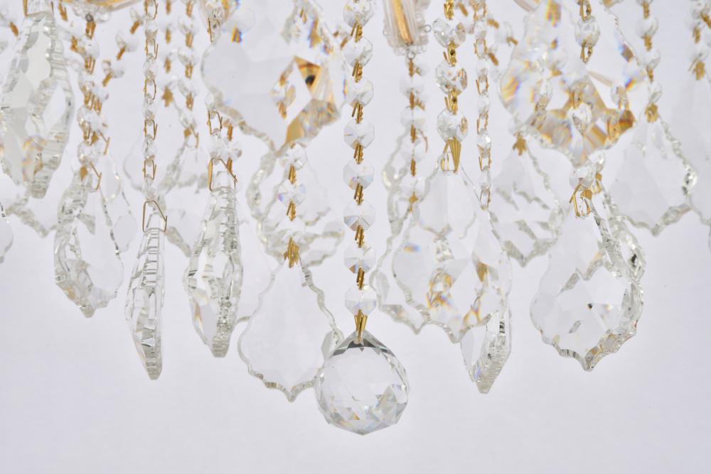 A heavenly high point to your home, Maria Theresa collection flush mount fixtures are ablaze with resplendent crystals. Copious strands of sparkling clear crystals dangle from elaborate tiers of glass-coated steel arms. An imperial favorite for the stairwell, dining room, or living room.