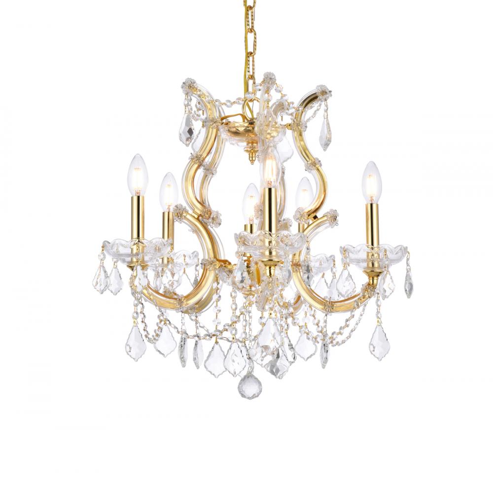 Maria Theresa 6 light Gold Pendant Clear Royal Cut Crystal