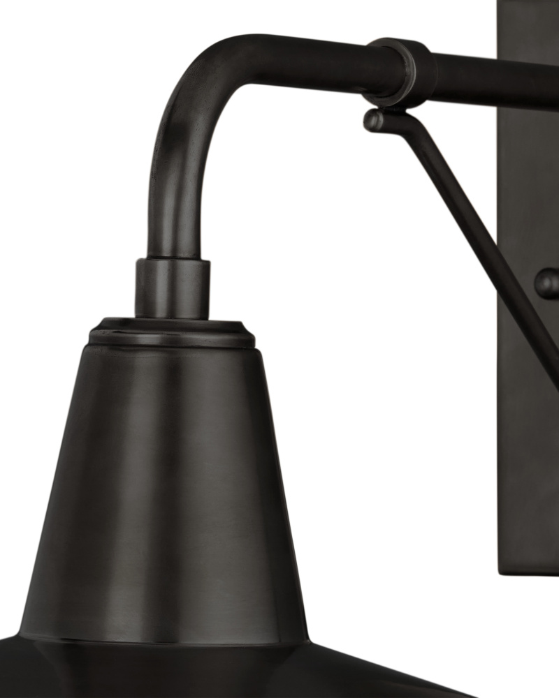 With its modern farmhouse feel, the Mariner Black Outdoor Wall Sconce is made of brass in a matt black finish. The depth of the black coloring with its textural patina, the shape of the geometric elements, and the simplicity of its form are the aspects that combine to make it a nostalgic design born during the early years of the Americana aesthetic.