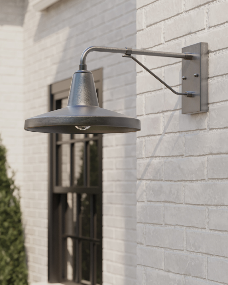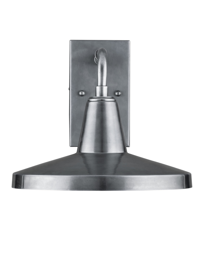With its modern farmhouse feel, the Mariner Silver Outdoor Wall Sconce is made of brass in an antique silver finish. The sheen of the silver coloring with its textural patina, the shape of the geometric elements, and the simplicity of its form are the aspects that combine to make it a nostalgic design born during the early years of the Americana aesthetic.