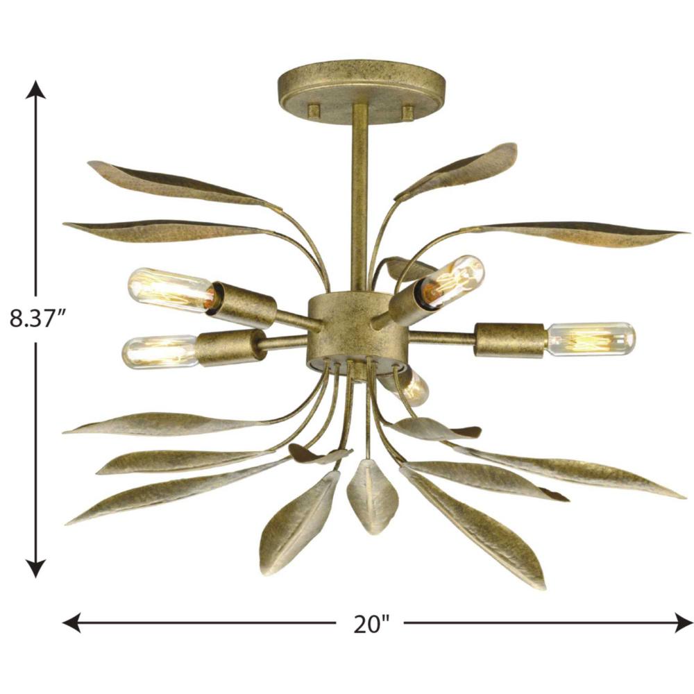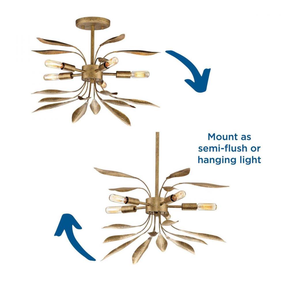 Application: Take a naturalistic approach to modern room design with the Mariposa Collection 5-Light Antique Gold Contemporary Semi-Flush Mount Convertible Ceiling Light ideal for any foyer, dining room, kitchen, breakfast nook, entryway, living room, or s