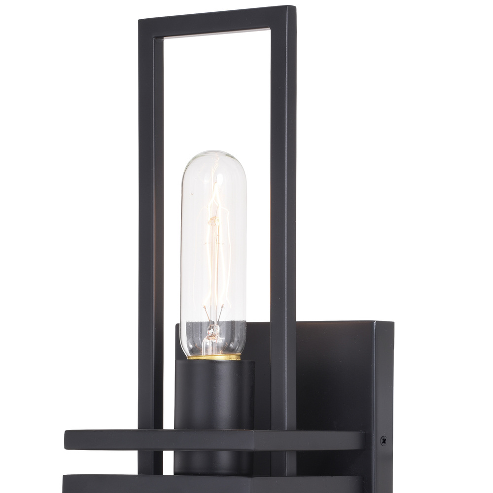 A bold open frame creates geometric statement in the Marquis collection. Elongated structures in a satin nickel or black finish offer two distinct options that will bring a contemporary feel to any space. Combine that with vintage Edison style filament bulbs to complete the look. This wall sconce is ideal for bathrooms, hallways, stairways, foyers, and more.