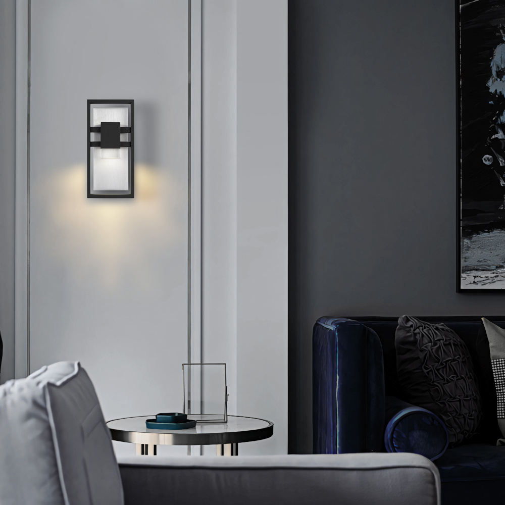 The Mars LED Sconce seamlessly blends brushed aluminum and sparkling crystal accents within a bold black frame, creating a captivating interplay of texture and light. A brushed aluminum backplate enhances its depth and brilliance, adding a sophisticated contrast. Designed for both interior and exterior spaces, this striking fixture brings modern elegance to any setting. Wet location rated for versatility, it also features 3-CCT customizable lighting and dimming capabilities for tailored illumination.