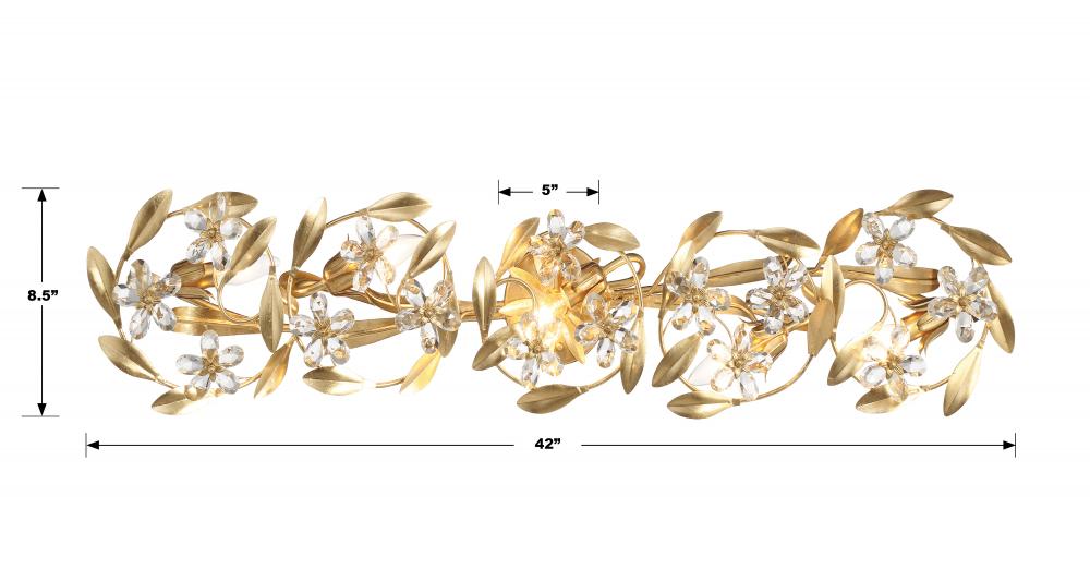The Marselle Collection is adorned with hand-cut crystal jewels and wrought iron leaves designed in a playful arrangement. The detail of leaves and intricate floral designs lend a sense of organic artistry to each piece, creating a mesmerizing display of nature's splendor. Available in three sophisticated finishes—white, gold and silver, this collection offers a touch of opulence for every decor. The crystal jewels are cleverly connected to form delicate flowers, adding a touch of whimsy and charm to your space. Even the canopy features a leafy design, completing the harmonious blend of nature and art.