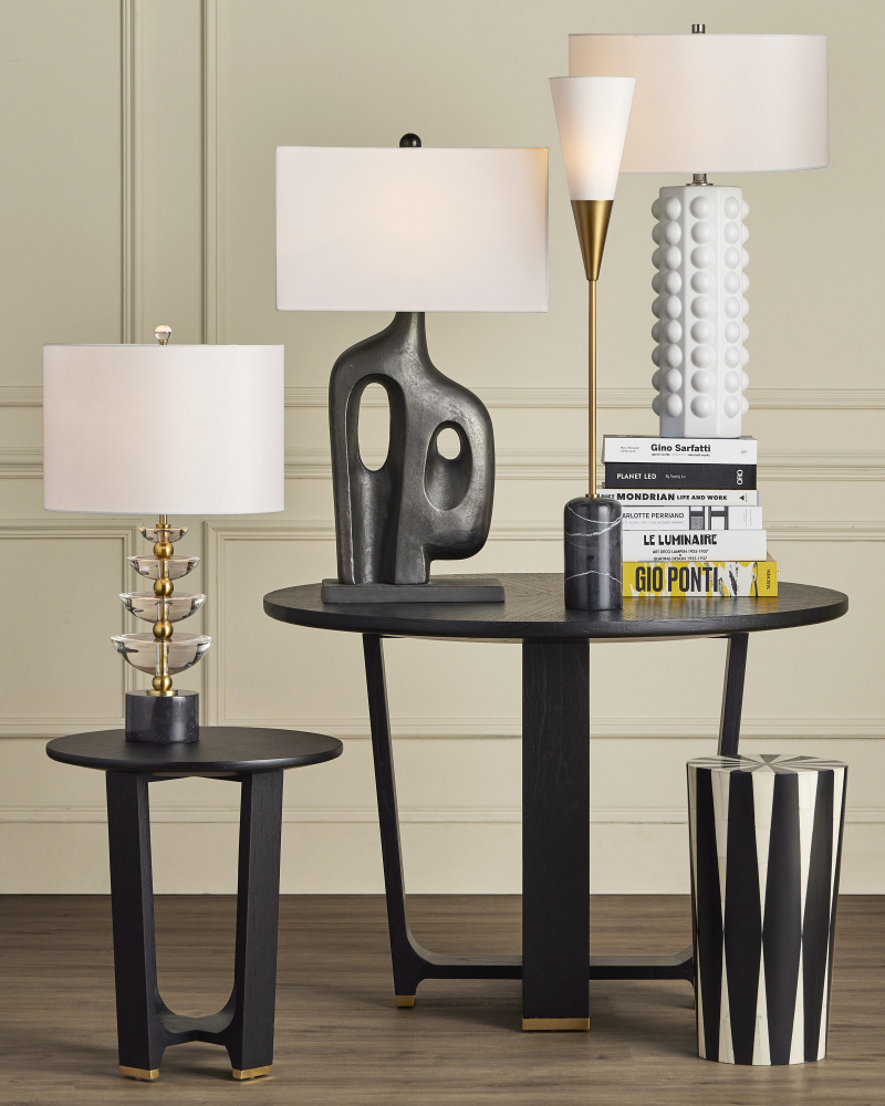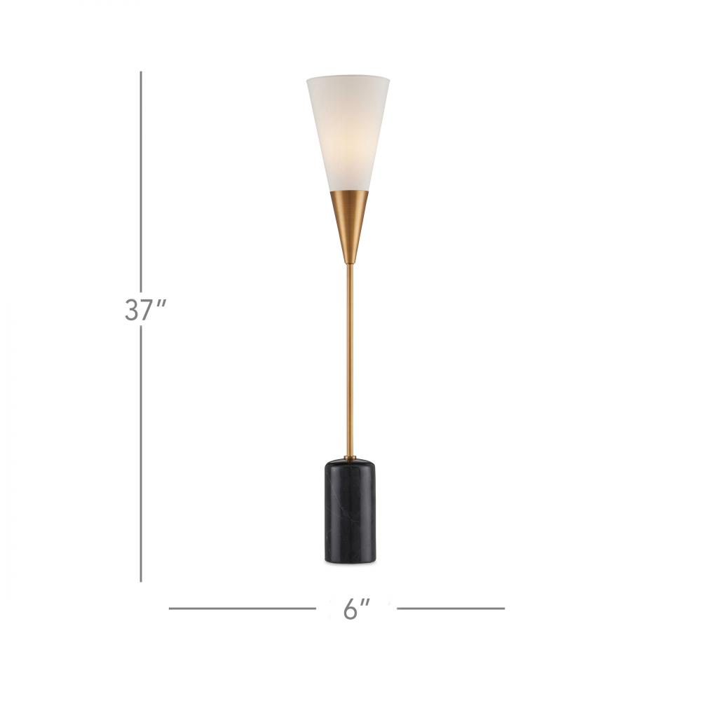 The Martini Black Torchiere Table Lamp takes inspiration from a martini glass, reimagined with a narrower, elongated shape. The same design approach is applied to the black marble base. The result is a chic gold and black table lamp with a blend of appealing attributes, including the antique brass finish on the metal and the off-white shantung shade, which works in harmony with the marble to lighten the composition.