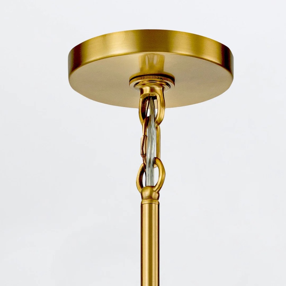 The Marvel 3 Light Chandelier is an adjustable height fixture finished in Aged Brass with each arm is accented by two pieces of Cased Opal Glass.