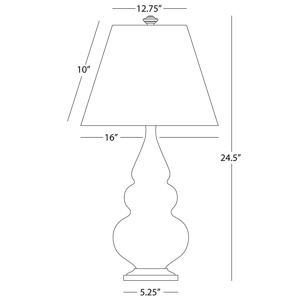 Our Triple Gourd collection features a simple but gracefully curving silhouette. Available in a wide array of vibrant colors and several different base finishes. - Midnight Blue Glazed Ceramic with Antique Silver Finished Accents Small Triple Gourd Accent Lamp with Pearl Dupioni Fabric Shade
