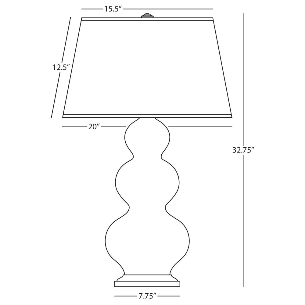 Our Triple Gourd collection features a simple but gracefully curving silhouette. Available in a wide array of vibrant colors and several different base finishes. - Midnight Blue Glazed Ceramic with Antique Silver Finished Accents Triple Gourd Table Lamp with Pearl Dupioni Fabric Shade