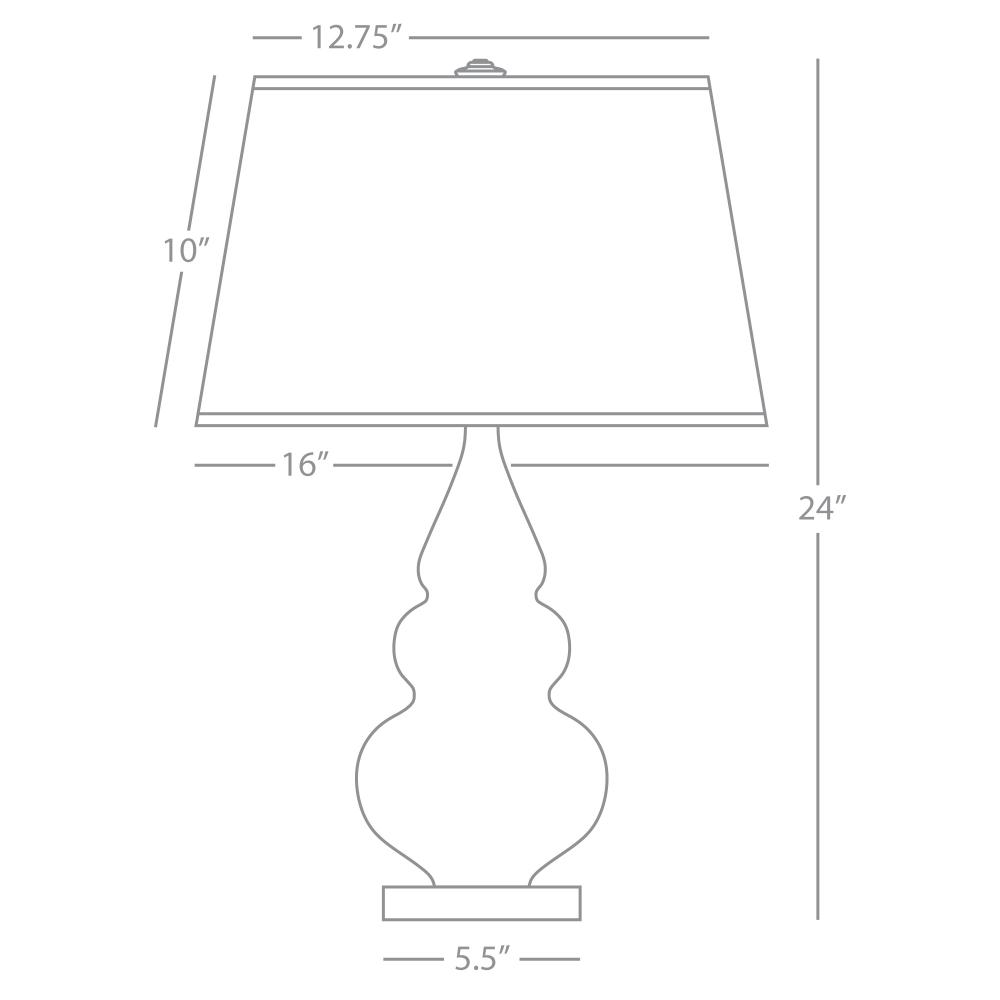 Our Triple Gourd collection features a simple but gracefully curving silhouette. Available in a wide array of vibrant colors and several different base finishes. - Steel Blue Glazed Ceramic with Lucite Base Small Triple Gourd Accent Lamp with Pearl Dupioni Fabric Shade