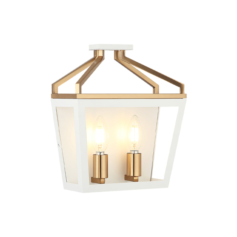 The Mavonshire family is exquisite. Provide visual interest in the unusual two tone frame and classic elegance in the frame shape. From the ceiling mount and wall sconces to the pendants, the entire family is stunning in White and Aged Gold Brass or Black and Aged Gold Brass.
