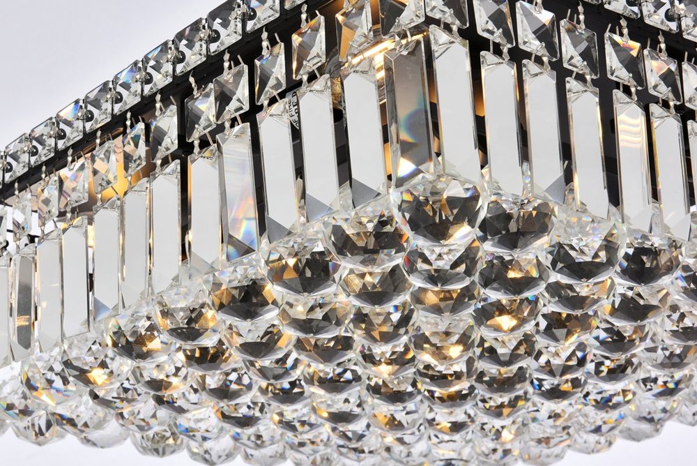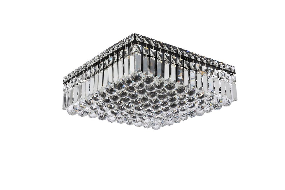 A riot of shapes and textures, Maxime collection flush mounts sparkle in a mosaic of crystal tiles. Square and rectangular precision-cut crystals form the flamboyant exterior while faceted crystal balls create a bubbled effect for light to shine through beneath. Available in a black or chrome finish with clear crystals, these lamps are a luxurious addition to a kitchen, stairwell, foyer, or living room.