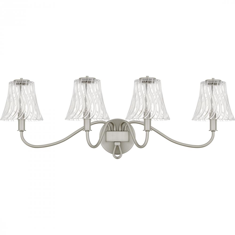With its traditional styling and clean lines, McKinney is a perfect addition to any bathroom vanity setting. Choose from a brushed nickel finish with clear swirl glass or a matte black finish with etched swirl glass. The glass shades feature a fun twist de