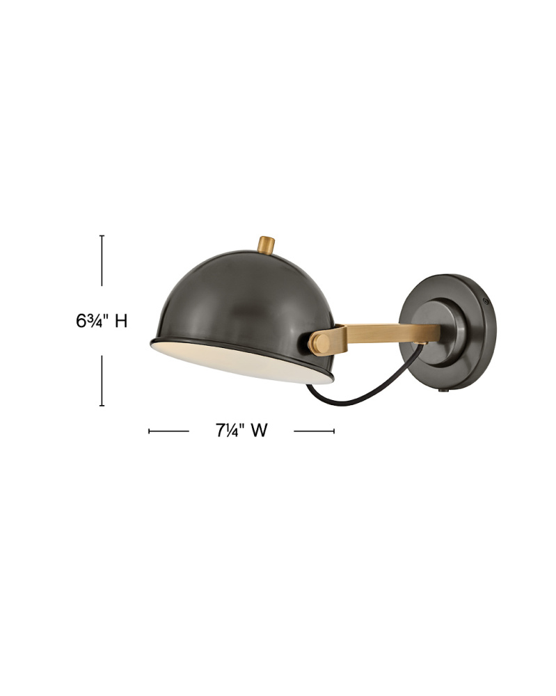 A modern bedside sconce with a vintage feel, Spence’s adjustable, rotating shade, painted white interior, and convenient on/off switch create the ideal reading or task light. Heritage Brass details and removable, black, fabric-wrapped cord complement a Black Oxide or Chalk White finish.