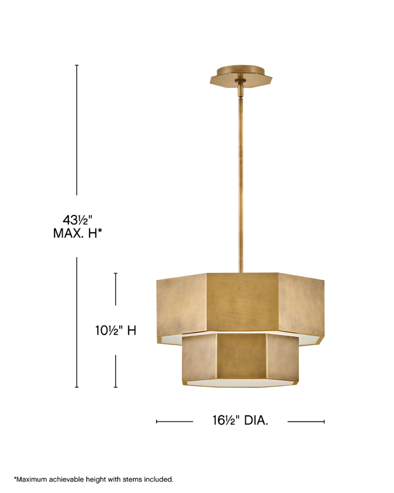 View the many sides of Facet. Interesting angles combine with bold metal features to create an edgy and contemporary profile that is unpretentious yet unforgettable. Hexagonal etched glass is showcased by Heritage Brass or Black Oxide finishes.