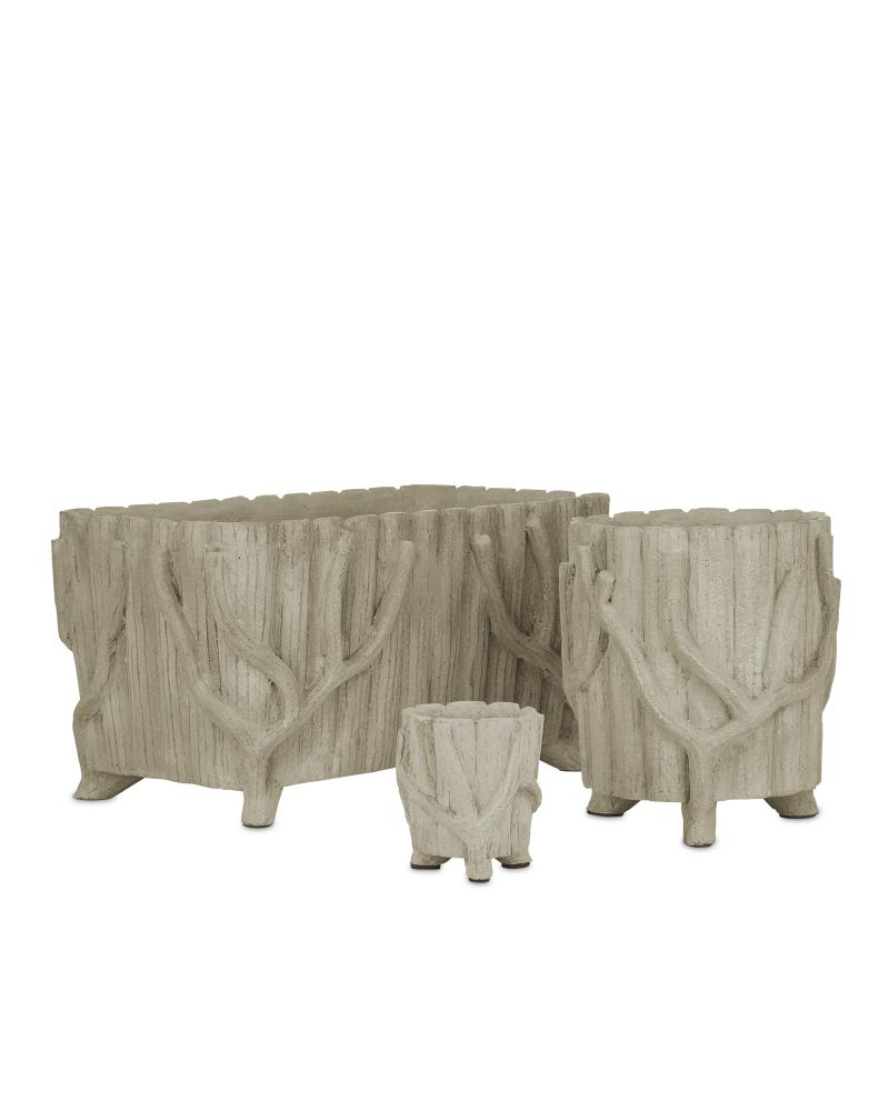 The flowing twig-like details along the ribbed surface of the Medium Faux Bois Planter were hand-applied by artisans who "sculpt" the concrete over a metal frame to look like a rustic faux bois artifact. The Portland finish that settles into the natural crevices enhances the illusion of age that will bring a nice hint of texture to indoor or outdoor settings. Ornamented with tree branches, the concrete planter sprouting with plants will fool the eye into thinking it is a true antique.