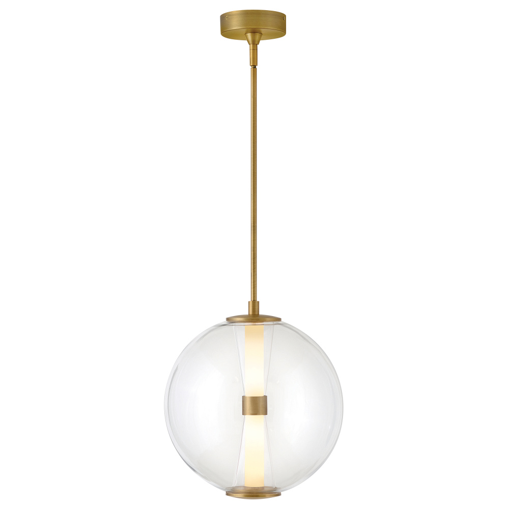 The centerpiece of Elin's bold and contemporary design is its sculpted clear glass that highlights an integrated LED inner light source. Featuring both conventional and striking elements, Elin is ideal for modern and transitional interiors and available in Black or Lacquered Brass finish options.