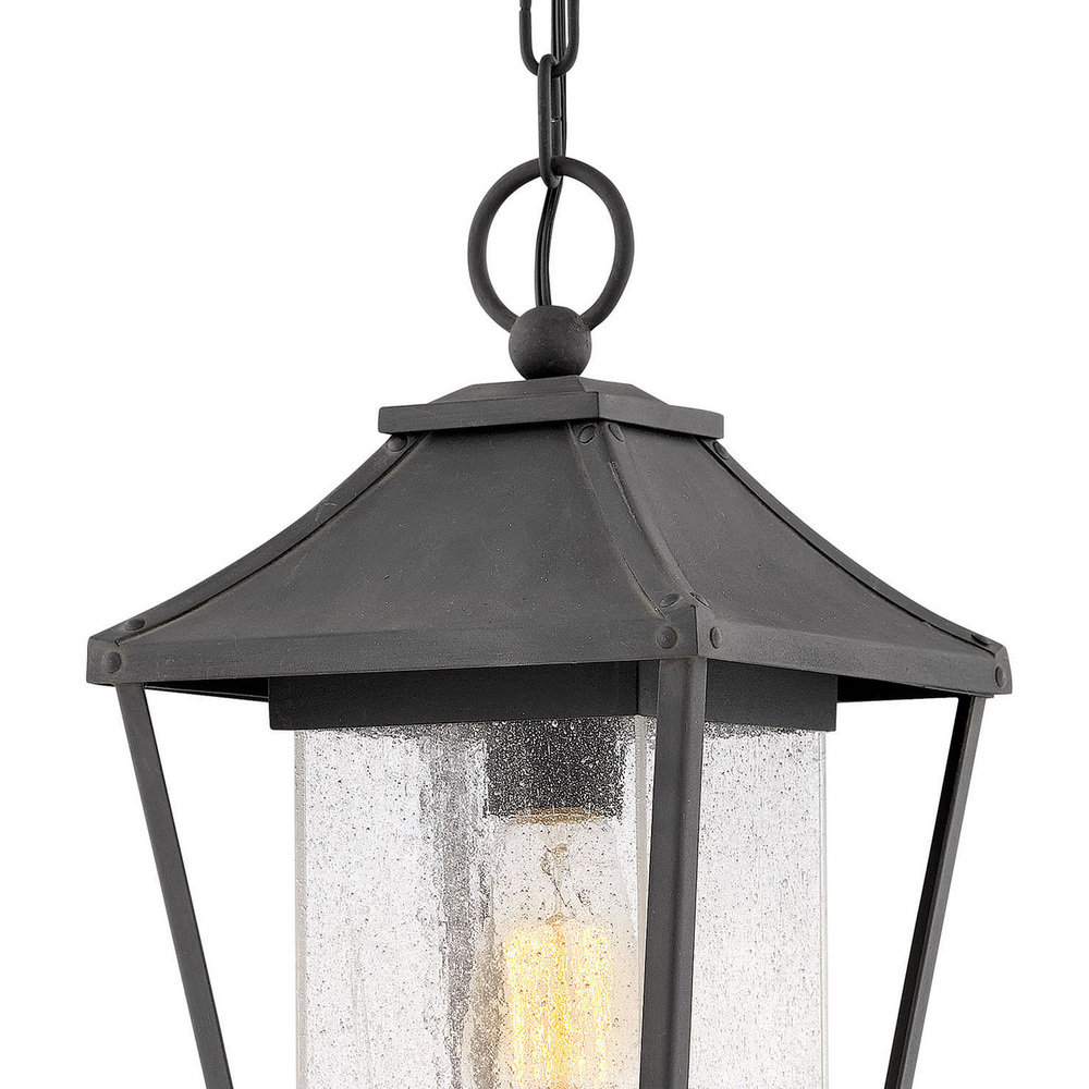 Palmer brings a dash of southern charm to a classic Americana lantern design with vintage rivets, sweeping roof and oversized loop ensuring a timeless aesthetic. Clear seedy glass and a Museum Black finish combine for a chic updated traditional style.