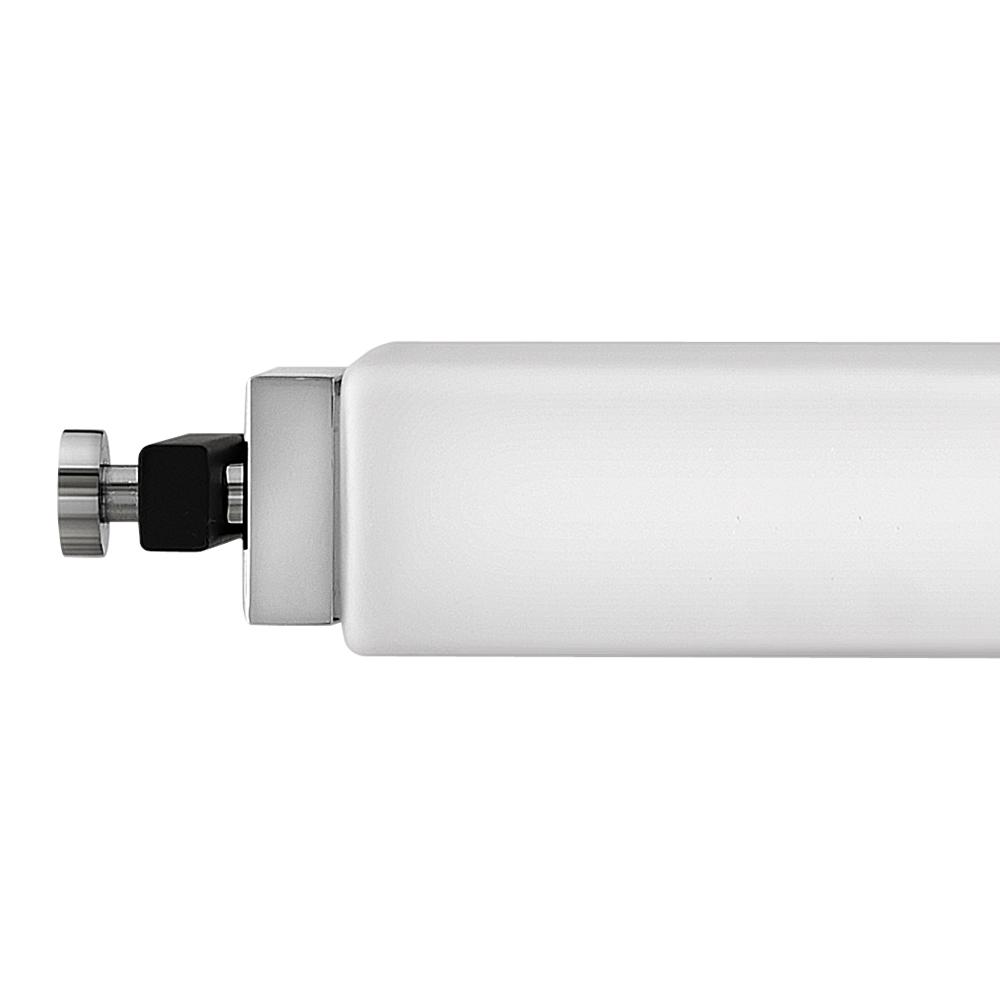 Rollins is both industrial in form and transitional in style. Unique rectangular etched opal glass has softly rounded edges offset by contrasting details on the backplate and the square knobs anchoring either end. This integrated LED design comes in two finish combinations, Black with Chrome and Black with Heritage Brass, and can be hung both vertically and horizontally.
