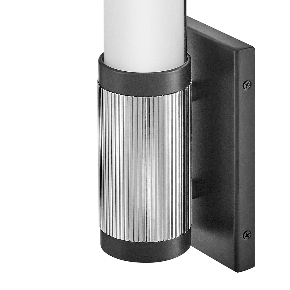 A timeless and tailored design with versatile, two-toned finish options ensures Zevi will shine among various décors. Both industrial in form and transitional in style, Zevi features a striking, signature ribbed cuff that centers an etched opal glass baton. This integrated LED sconce can be mounted vertically and horizontally and comes in three finish combinations.