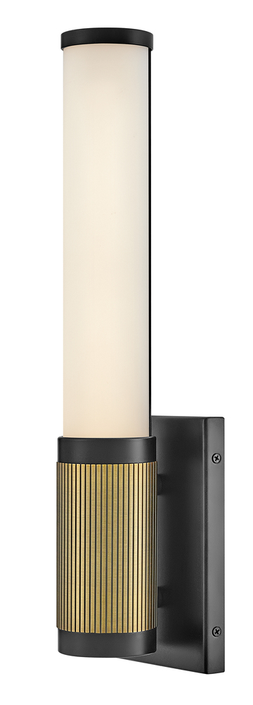 A timeless and tailored design with versatile, two-toned finish options ensures Zevi will shine among various décors. Both industrial in form and transitional in style, Zevi features a striking, signature ribbed cuff that centers an etched opal glass baton. This integrated LED sconce can be mounted vertically and horizontally and comes in three finish combinations.