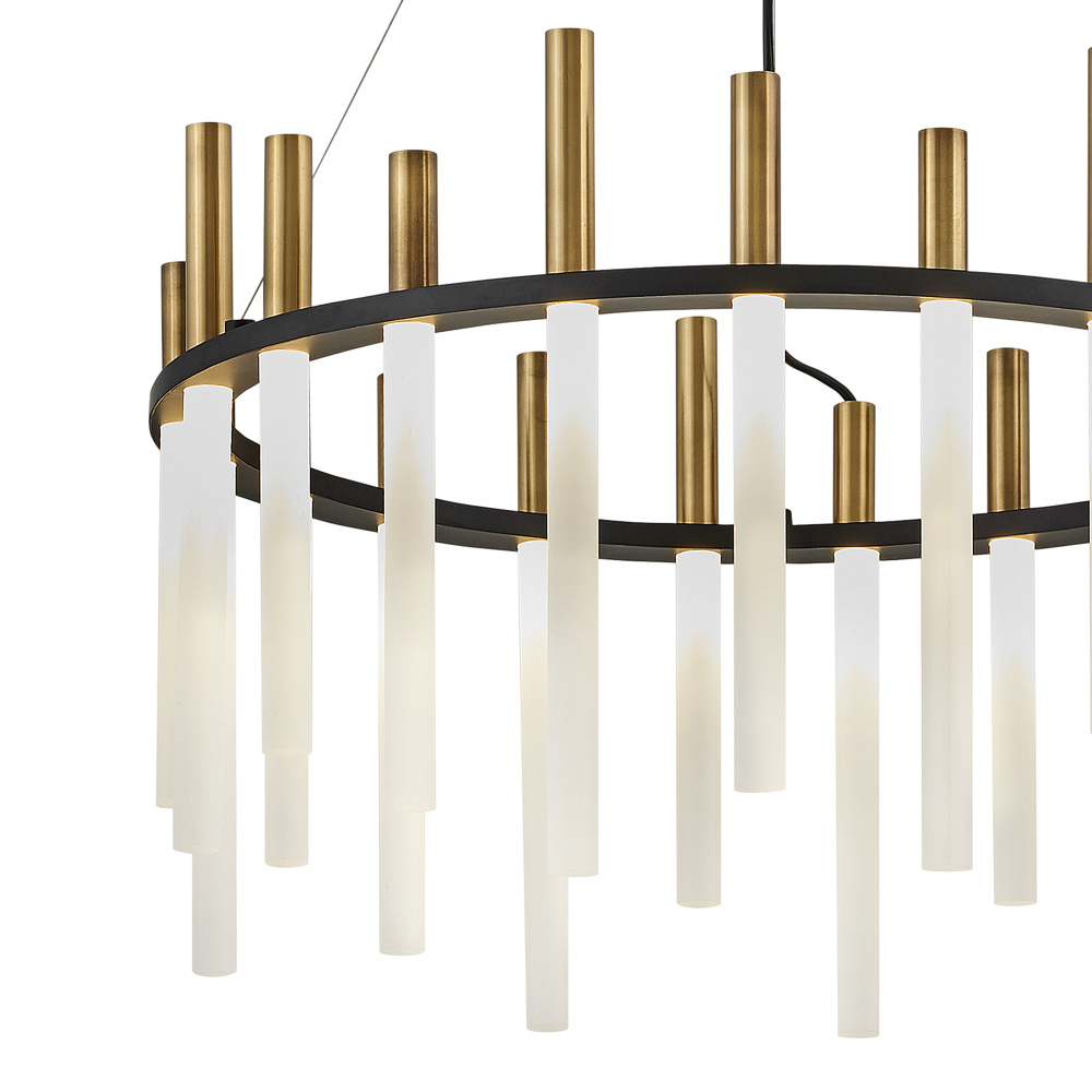 Echo's spectacular, integrated LED design reverberates with modern style. Sleek, glowing acrylic rods are crowned in metal tubes giving a contemporary look. Echo is offered in Heritage Brass finish accented by bold Black.