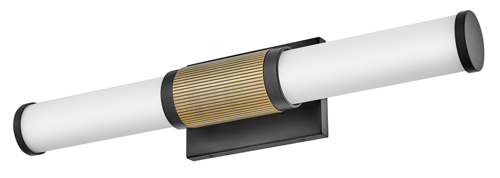 A timeless and tailored design with versatile, two-toned finish options ensures Zevi will shine among various décors. Both industrial in form and transitional in style, Zevi features a striking, signature ribbed cuff that centers an etched opal glass baton. This integrated LED sconce can be mounted vertically and horizontally and comes in three finish combinations.
