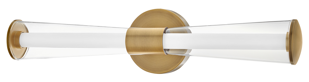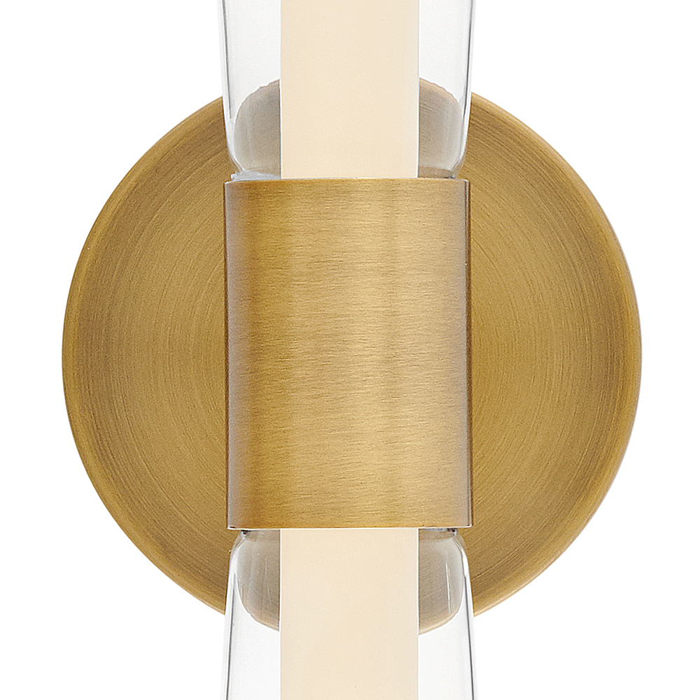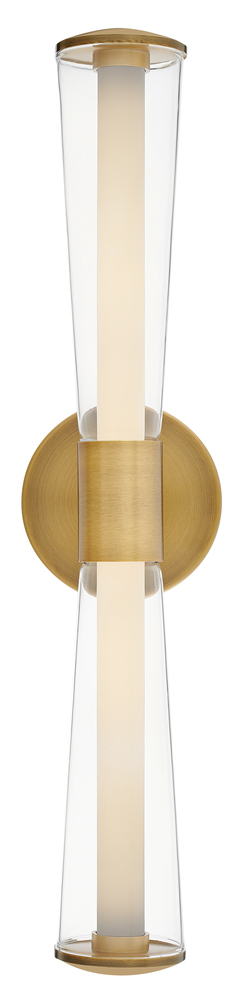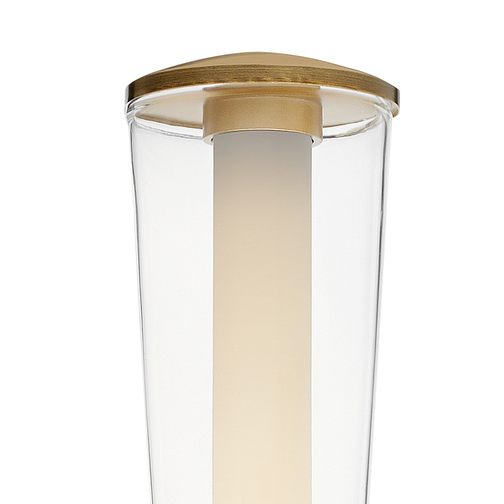 The centerpiece of Elin's bold and contemporary design is a trumpet-shaped clear outer glass that highlights an integrated LED inner light source. Featuring both conventional and striking elements, Elin is ideal for modern and transitional interiors and available in Black or Lacquered Brass finish options.