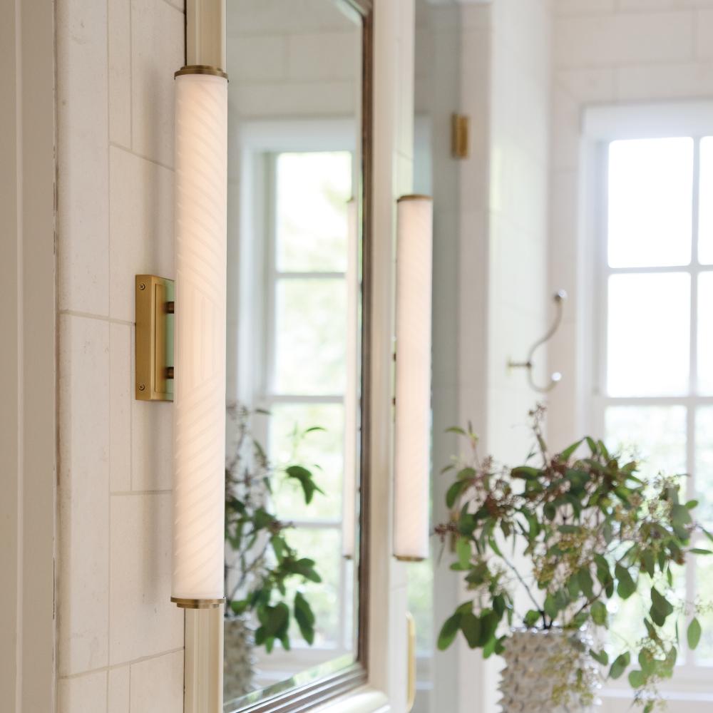 Devon is the perfect balance of style and function. Geometric subtleties paired with the cased opal glass blend transitional and modern elements to make a sleek and unexpected statement. Stepped endcaps on both sides match the square backplate for a dash of industrial appeal. Devon is part of the Lisa McDennon Collection.