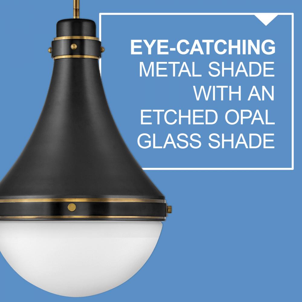Oliver features an eye-catching sleek spun metal shade and etched opal glass shade beneath. Sleek metal bands and knobs add interest and reinforce its modern-meets-traditional style. Oliver is available in a robust lineup of finish combinations.