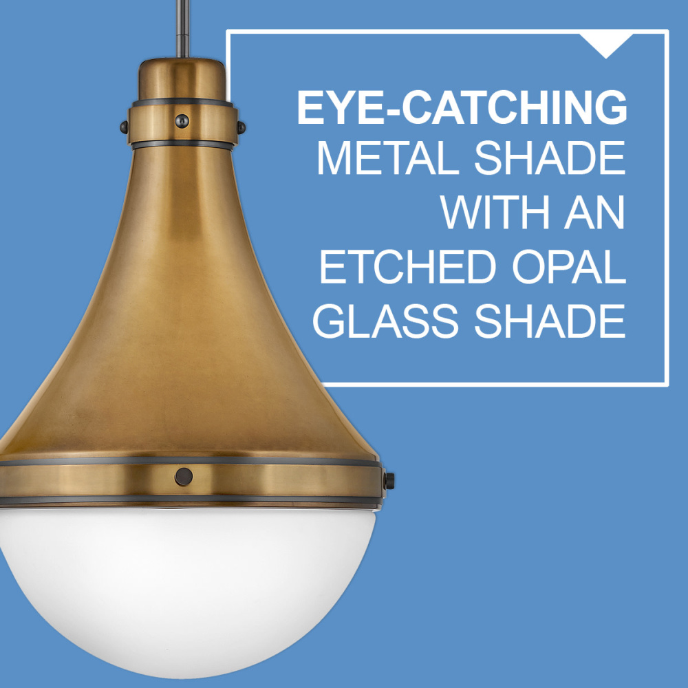 Oliver features an eye-catching sleek spun metal shade and etched opal glass shade beneath. Sleek metal bands and knobs add interest and reinforce its modern-meets-traditional style. Oliver is available in a robust lineup of finish combinations.