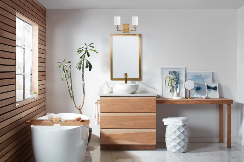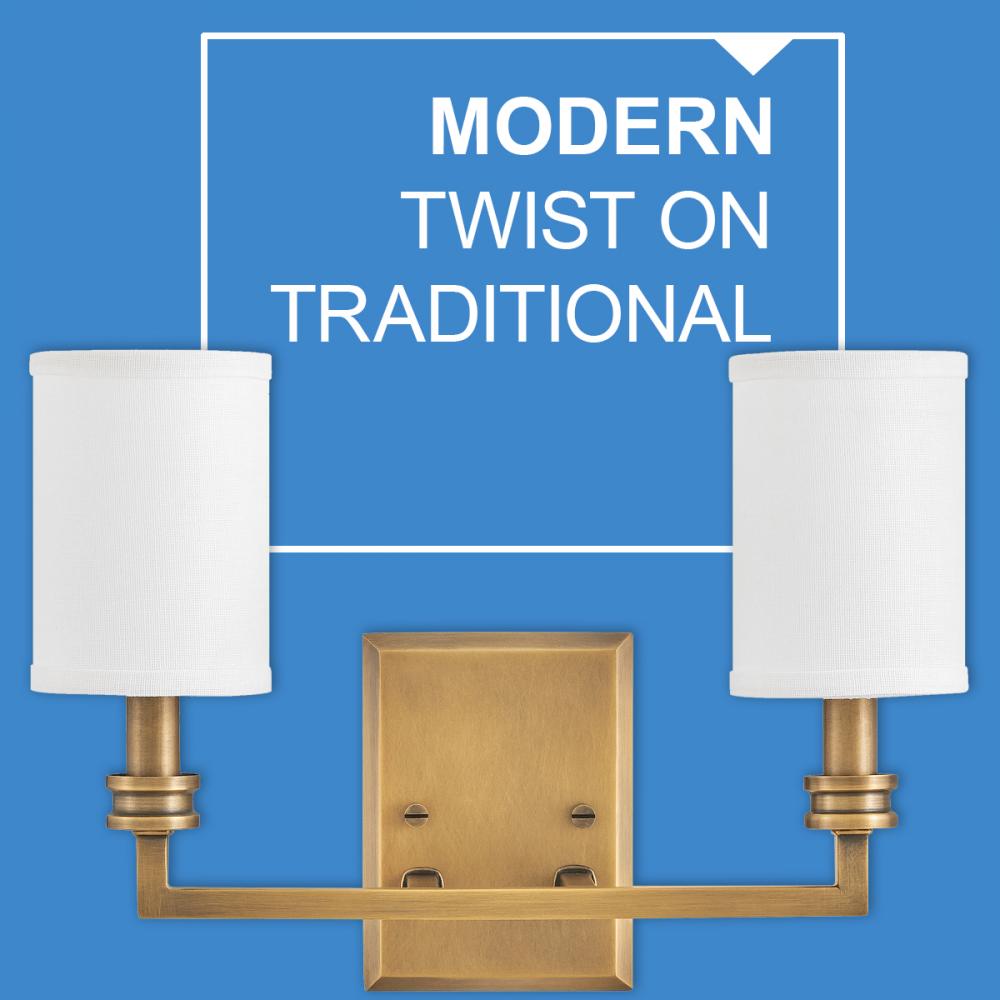 A modern interpretation of traditional torch sconces, Moore’s square stems and beveled back plate are complemented by decorative cast details. Off-white linen shades accentuated by top and bottom binding create a sophisticated, tailored look.