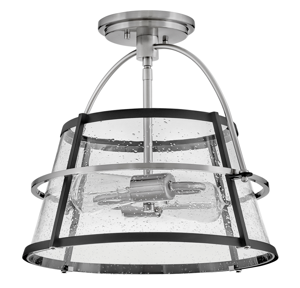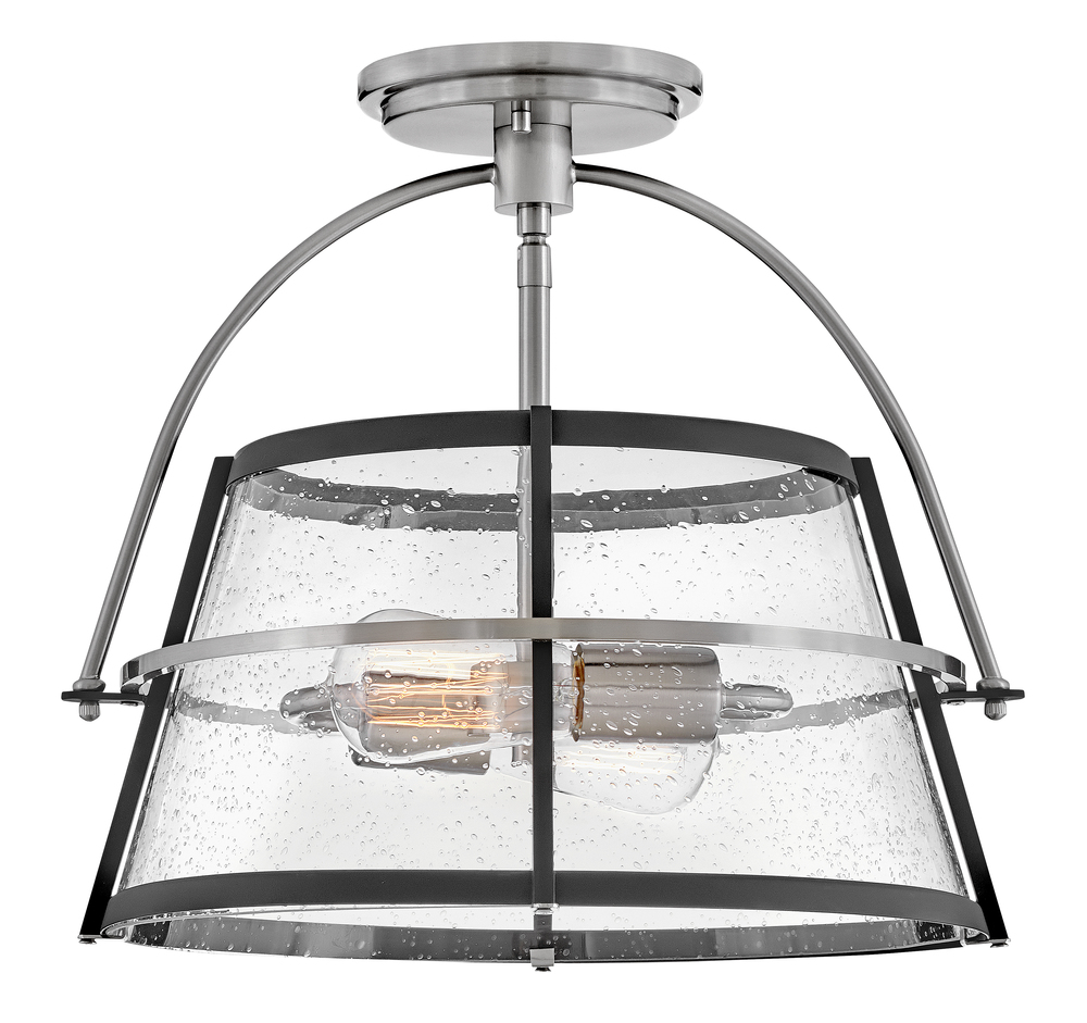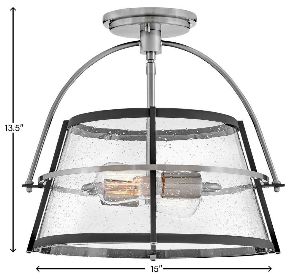 Tournon merges timeless appeal with contemporary functionality. The steel frame holds the clear seedy glass shade surrounding the bulbs within. An oversized yoke completes the mid-century modern design.