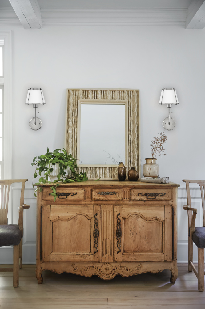 An effortless blend of classic style elements, Clarke’s transitional design is fresh and elegant. Its captivating metal or linen shade and contrasting frame lend architectural beauty to any space with a selection of sophisticated finishes to complement any décor aesthetic.
